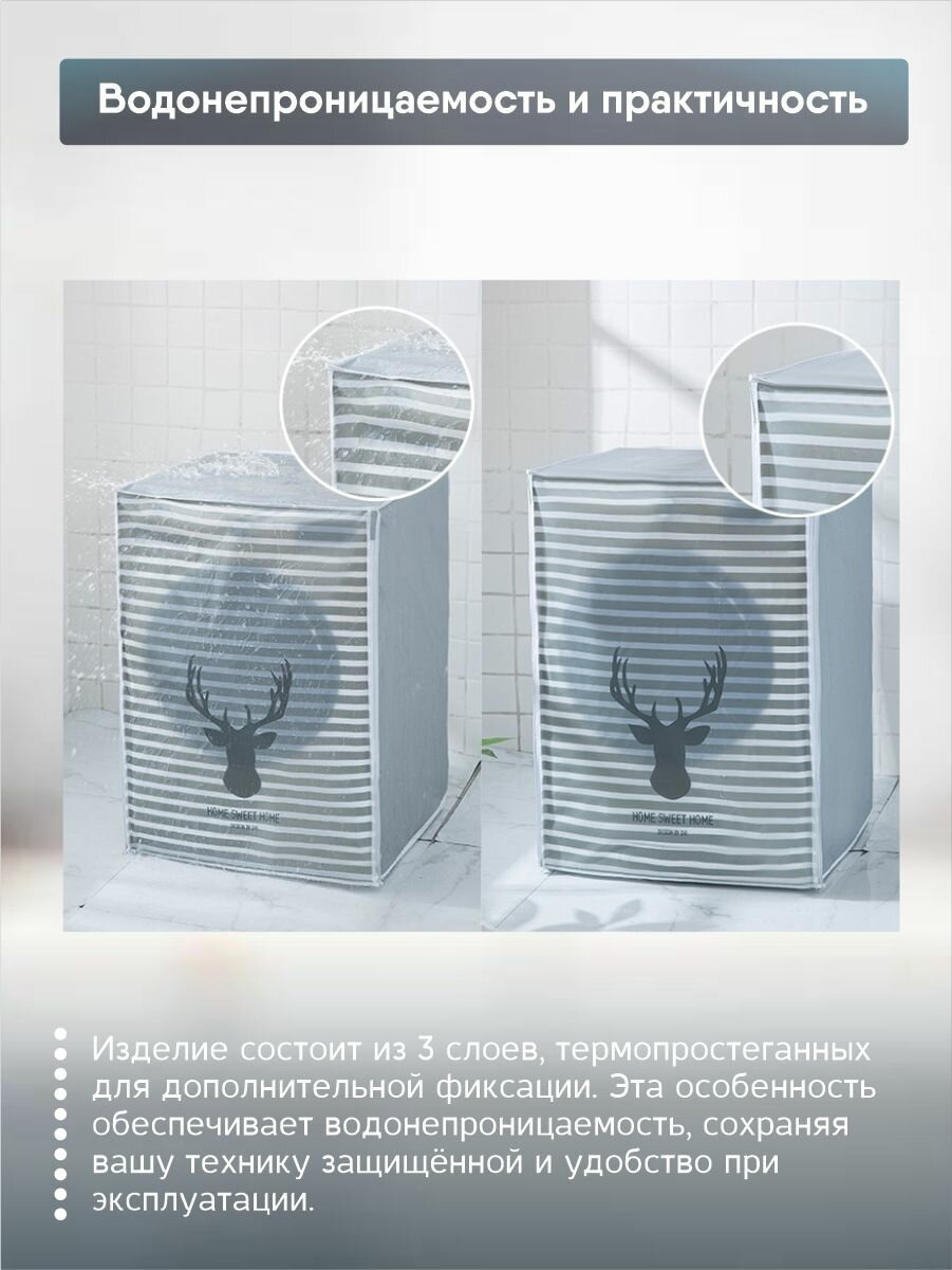 Купить Чехол универсальный для стиральной машины, размер 83х60х56 см, водонепроницаемый, горизонтальной загрузки, на молнии