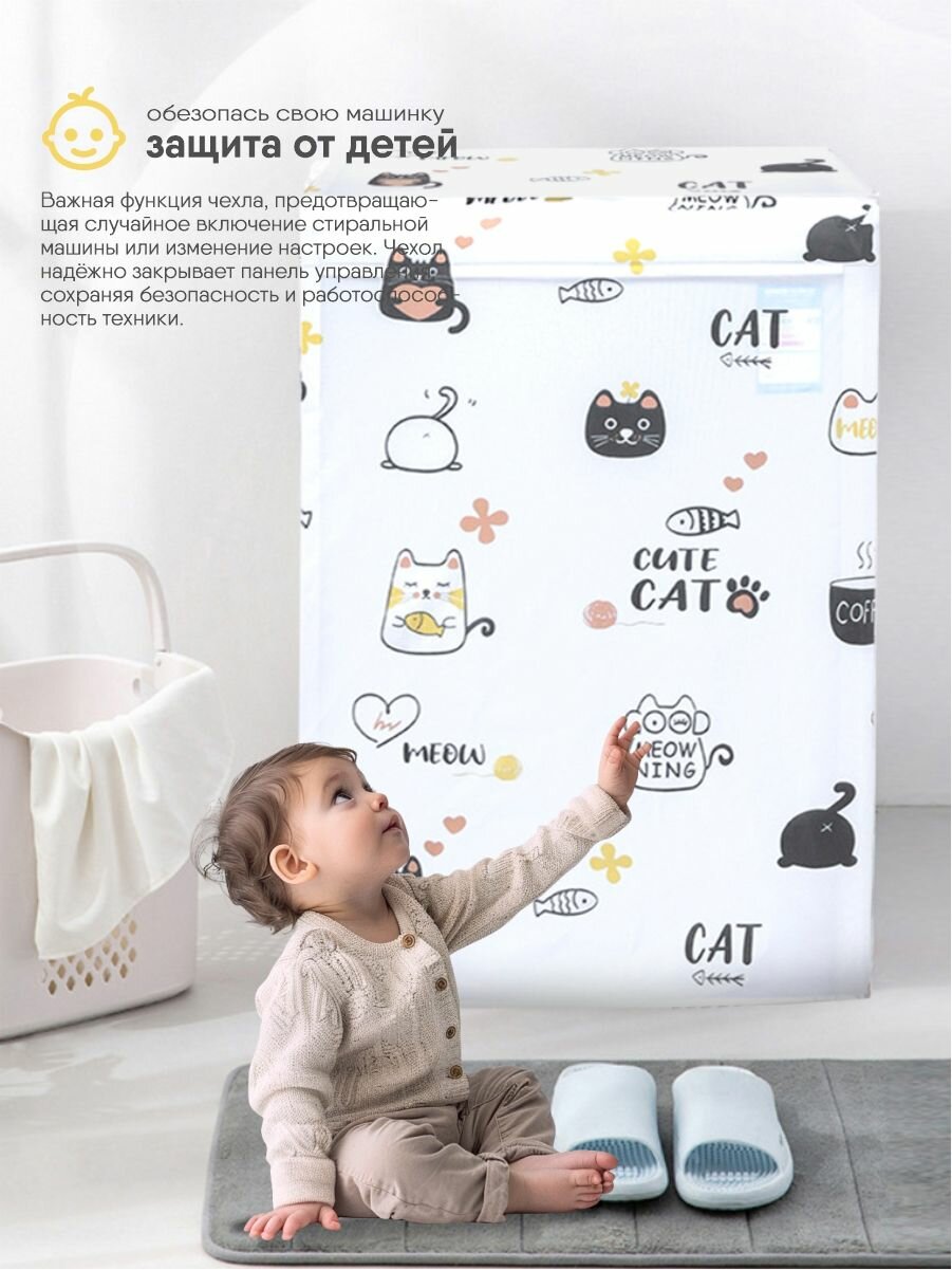Купить Чехол универсальный для стиральной машины, размер 58x62x85 см, водонепроницаемый, горизонтальной загрузки, принт котики, на молнии