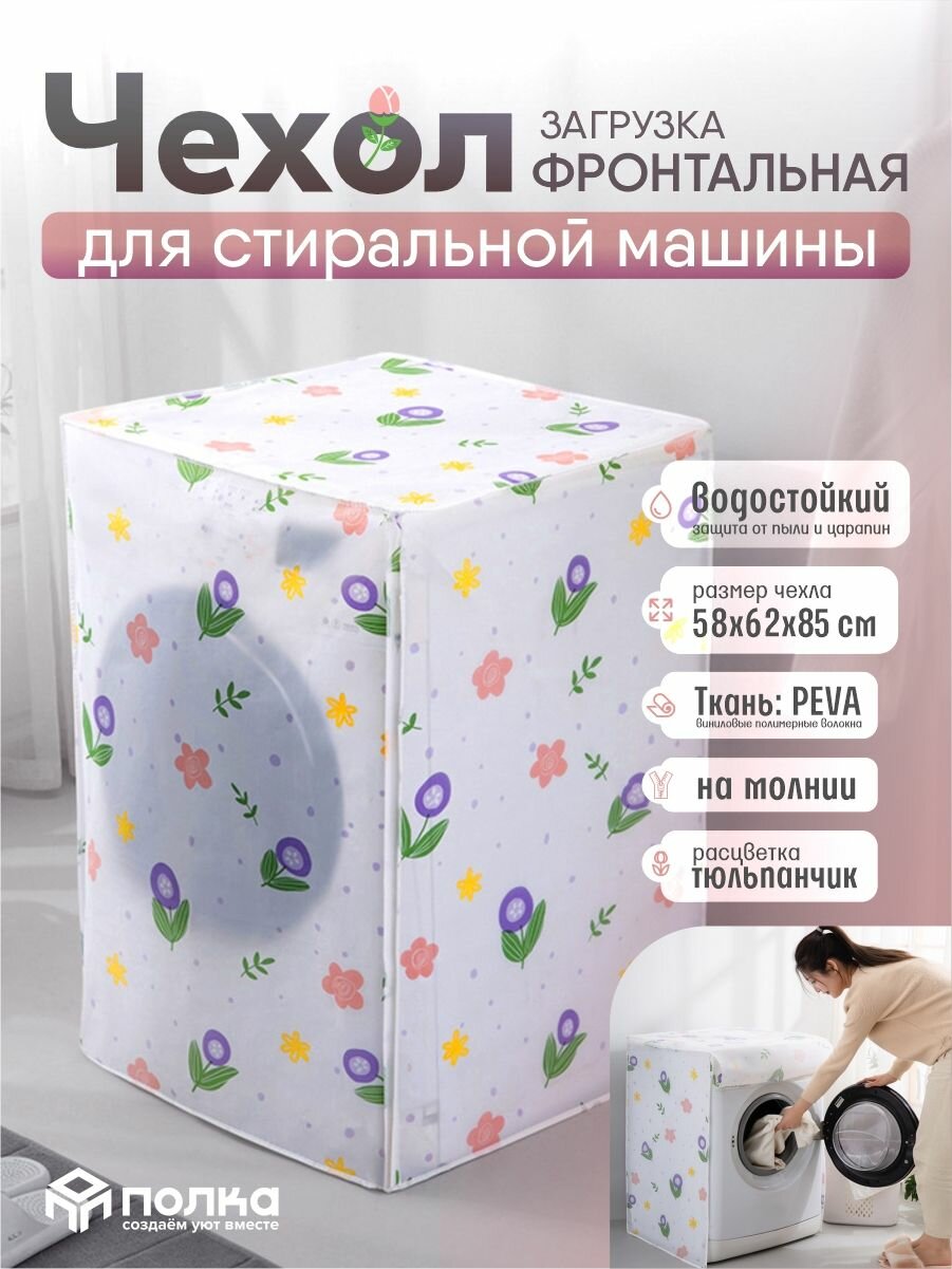 СохранитьЧехол универсальный для стиральной машины, размер 58x62x85 см, водонепроницаемый, горизонтальной загрузки, принт тюльпанчики, на молнии интересное: