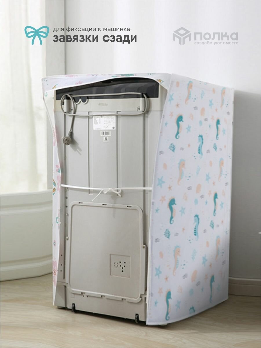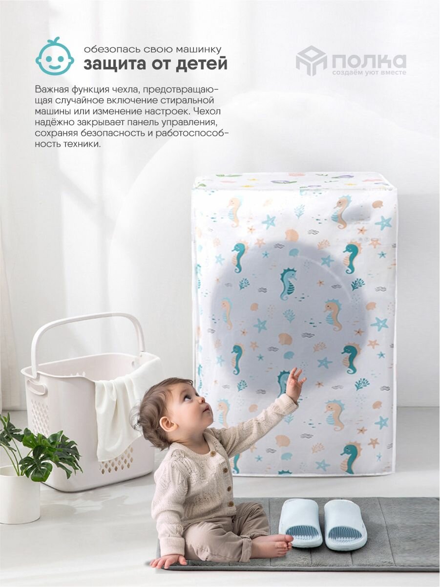 СохранитьЧехол универсальный для стиральной машины, размер 58x62x85 см, водонепроницаемый, горизонтальной загрузки, принт морские коньки, на молнии интересное: