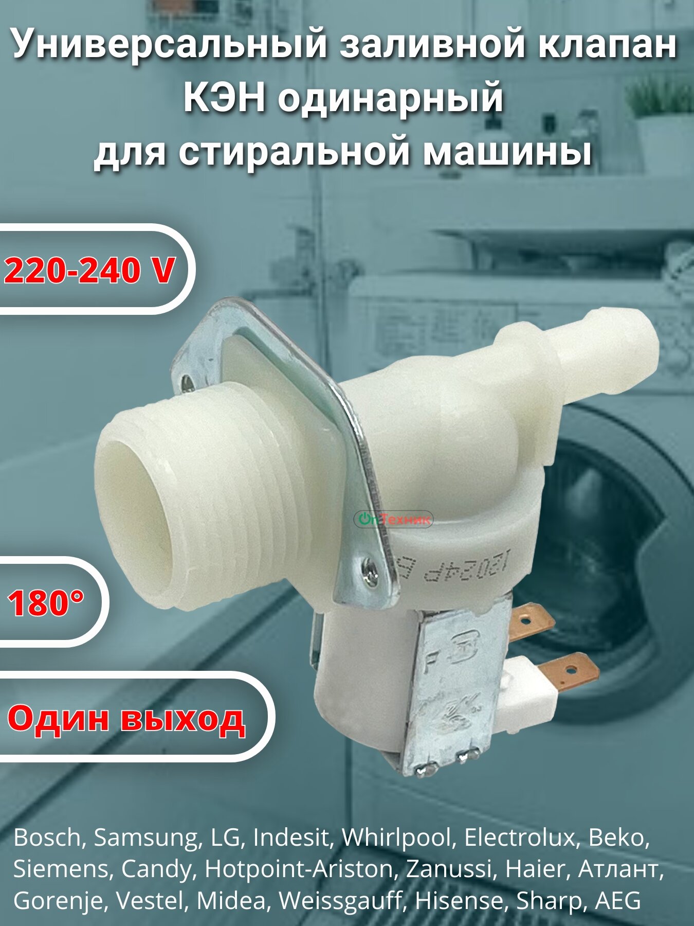Универсальный заливной клапан КЭН одинарный для стиральной машины, 1Wx180°, 1 отвода под 180 градусов интересное: