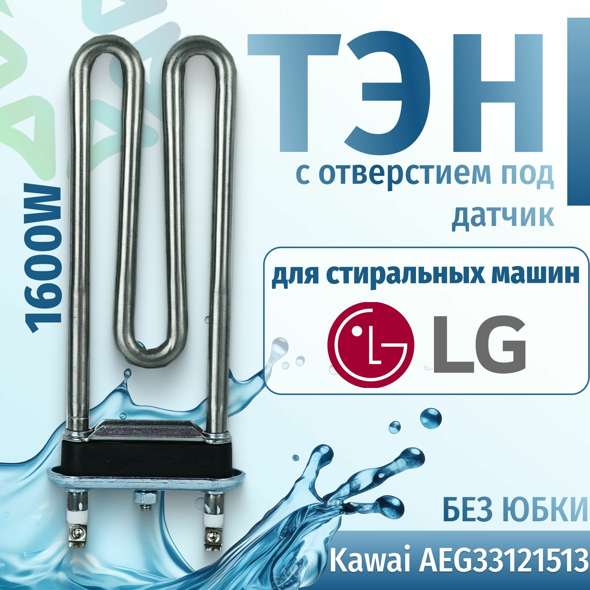 Тэн стиральной машины 1600W Kawai прямой без датчика L175 LG AEG33121513 без юбки интересное: