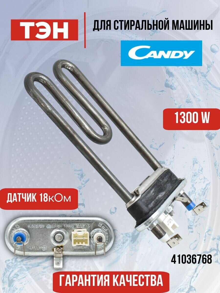 ТЭН для стиральной машины Candy 1300W L160мм с датчиком 18кОм, 41036768 интересное: