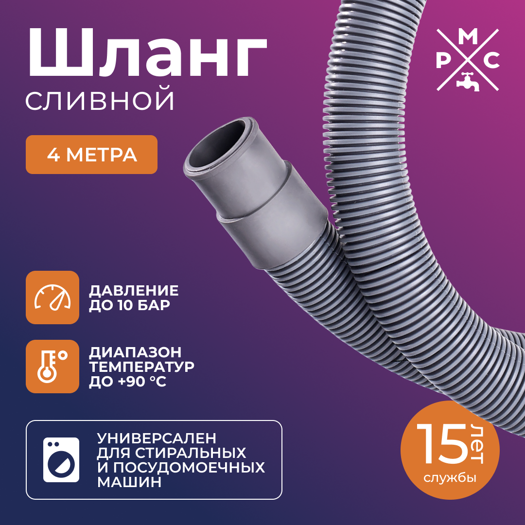 Шланг сливной, РМС ШС-4, для стиральных и посудомоечных машин 4м интересное: