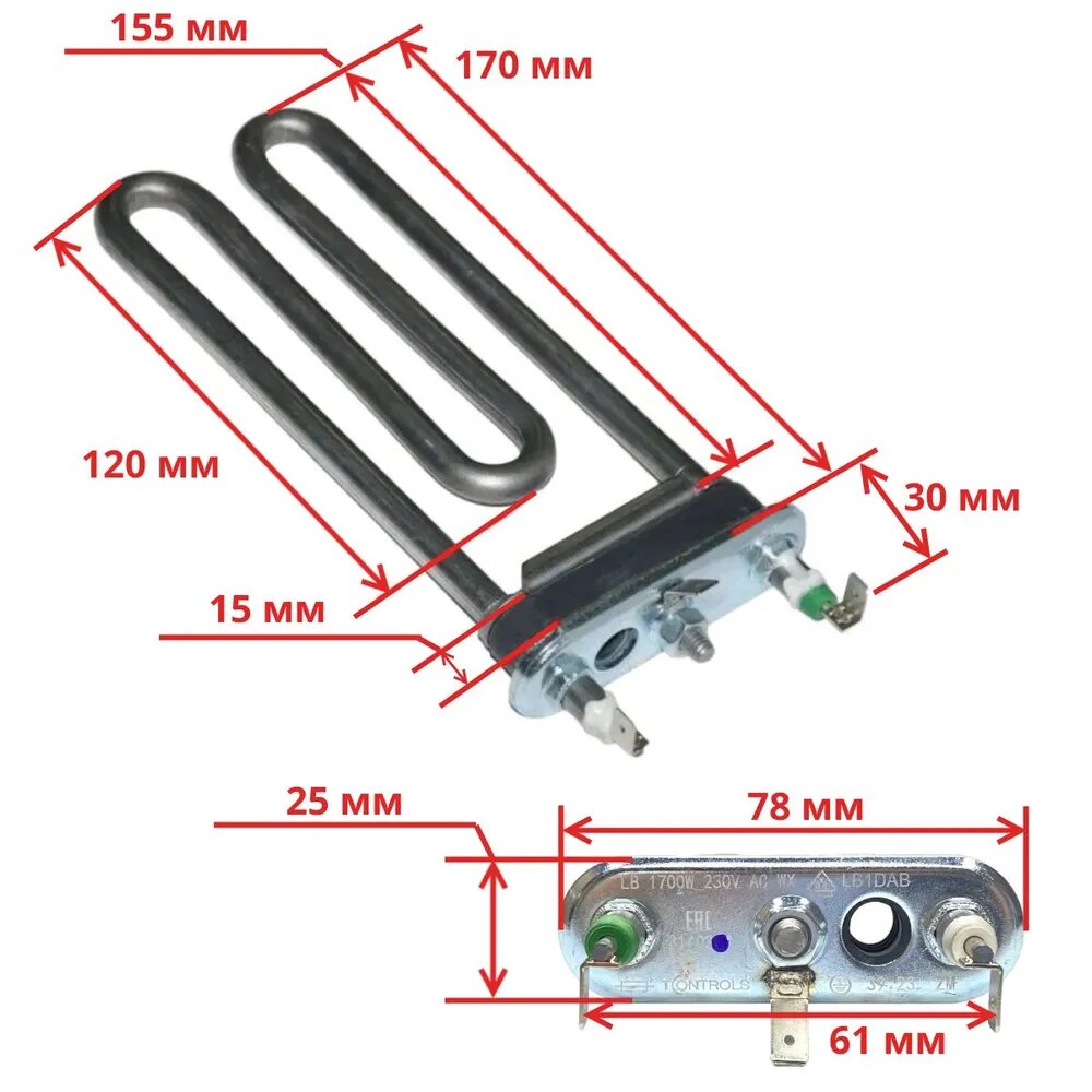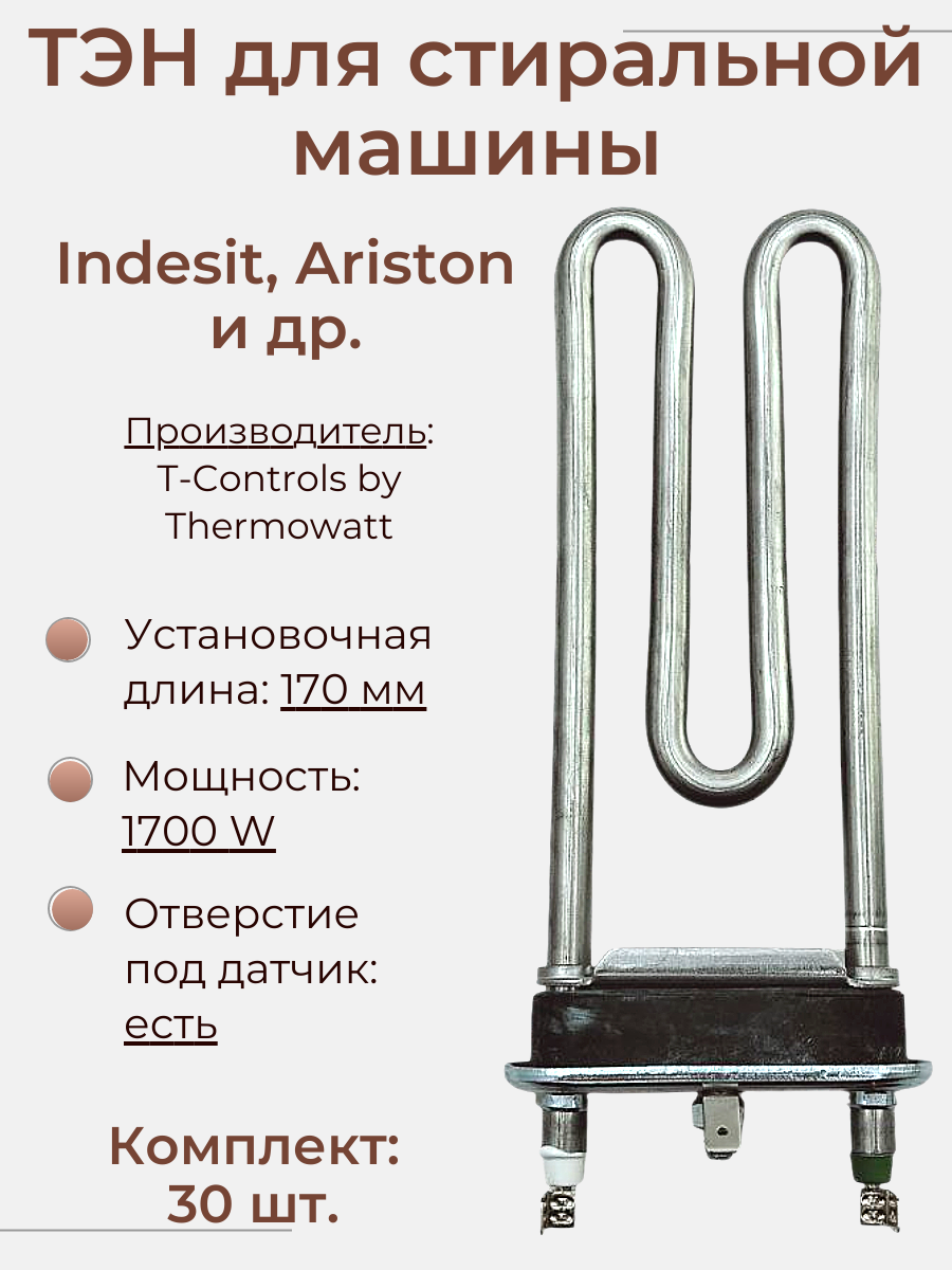 ТЭН для стиральной машины 1700 W/ 170 мм, с отверстием под термодатчик, 30 шт. интересное: