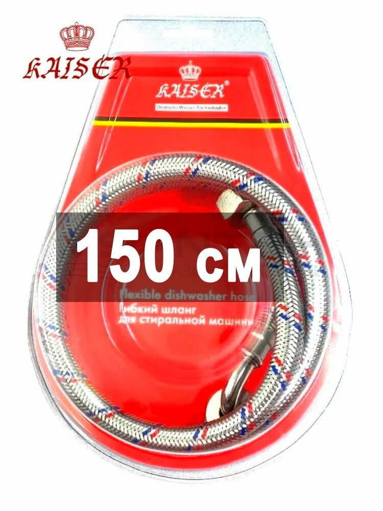 Купить Шланг заливной для стиральной машины 150 см KAISER 0071 нержавеющая сталь, 3/4 " - 3/4, в блистере