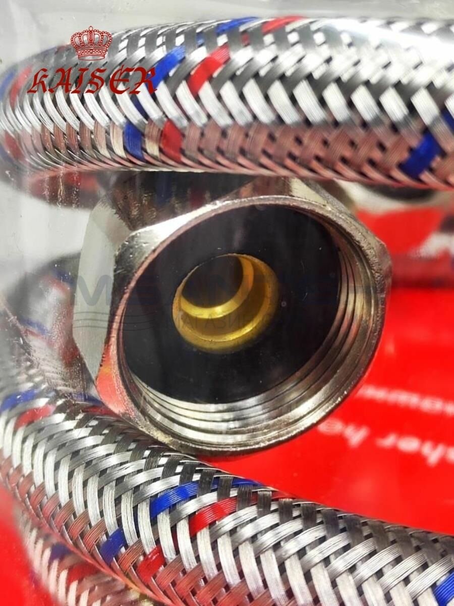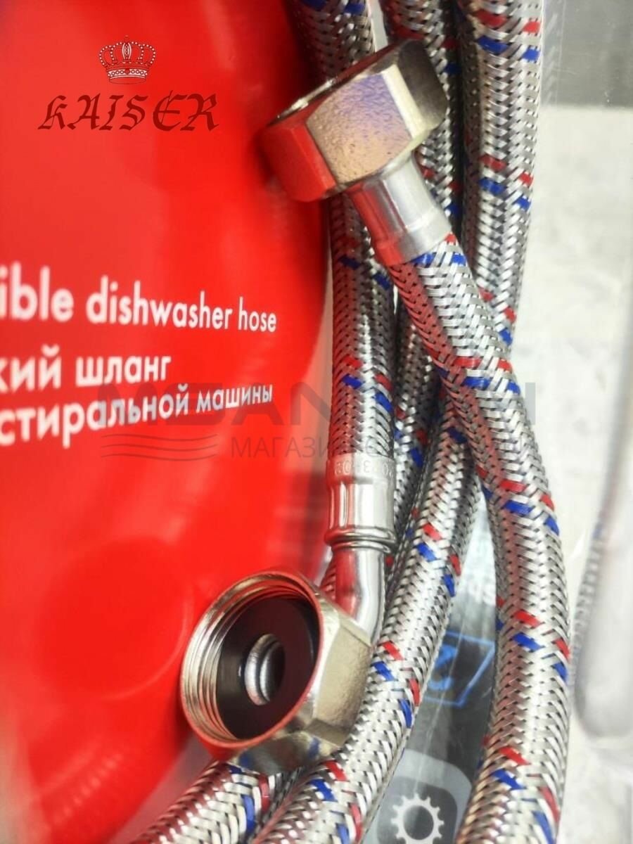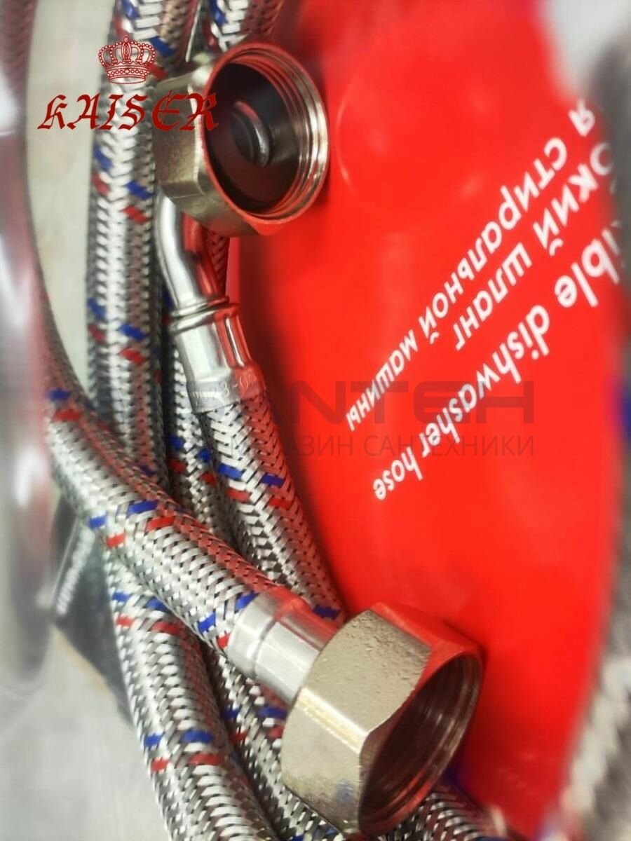 Шланг заливной для стиральной машины 100 см KAISER 0070 нержавеющая сталь, 3/4 " - 3/4, в блистере