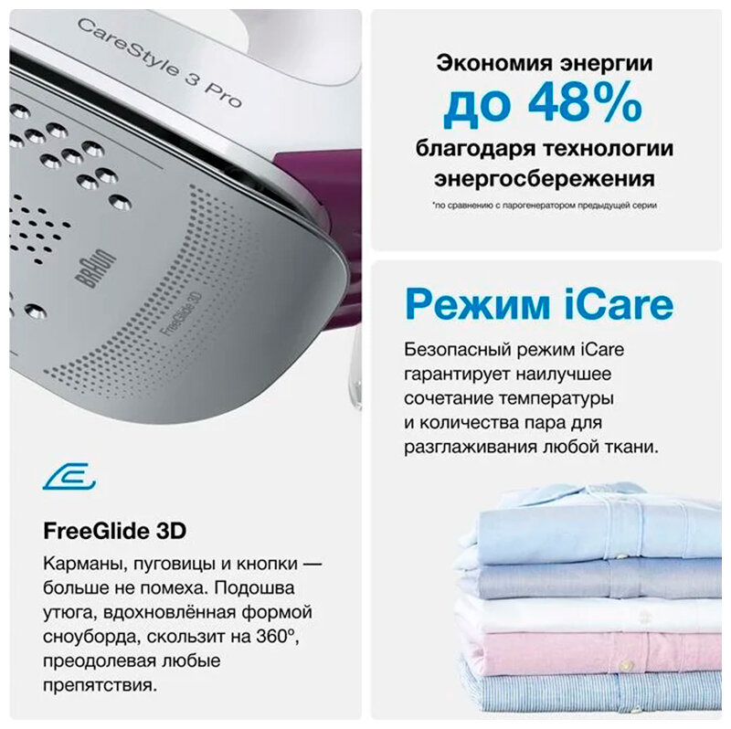 Гладильная система Braun IS3155VI, мощность 2400 Вт, паровой удар 430 г/мин интересное: