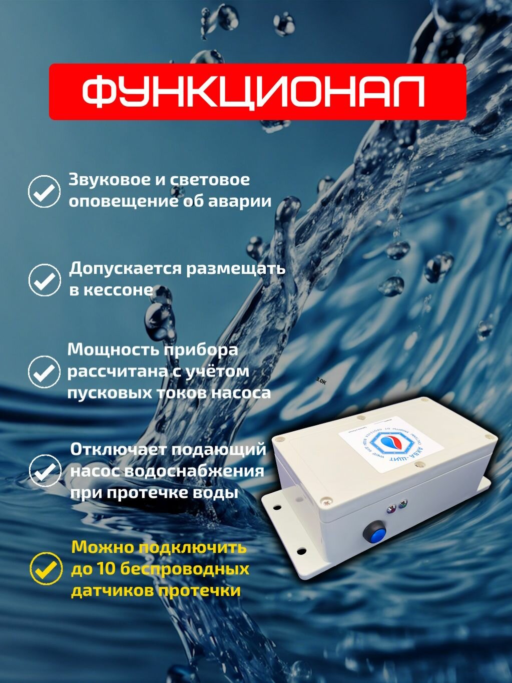 Аква-Щит 3.0С (2Б) защита от протечек для дома (для насоса до 3кВт) + аварийный вывод 220В, 2 беспроводных датчика в комплекте