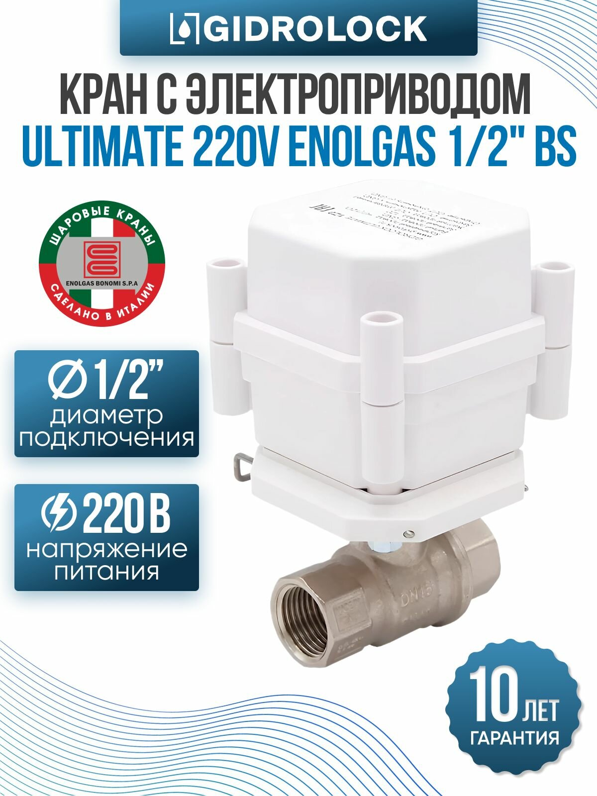 Купить Кран шаровой с электроприводом Gidrolock Ultimate 220V Enolgas 1/2" BS