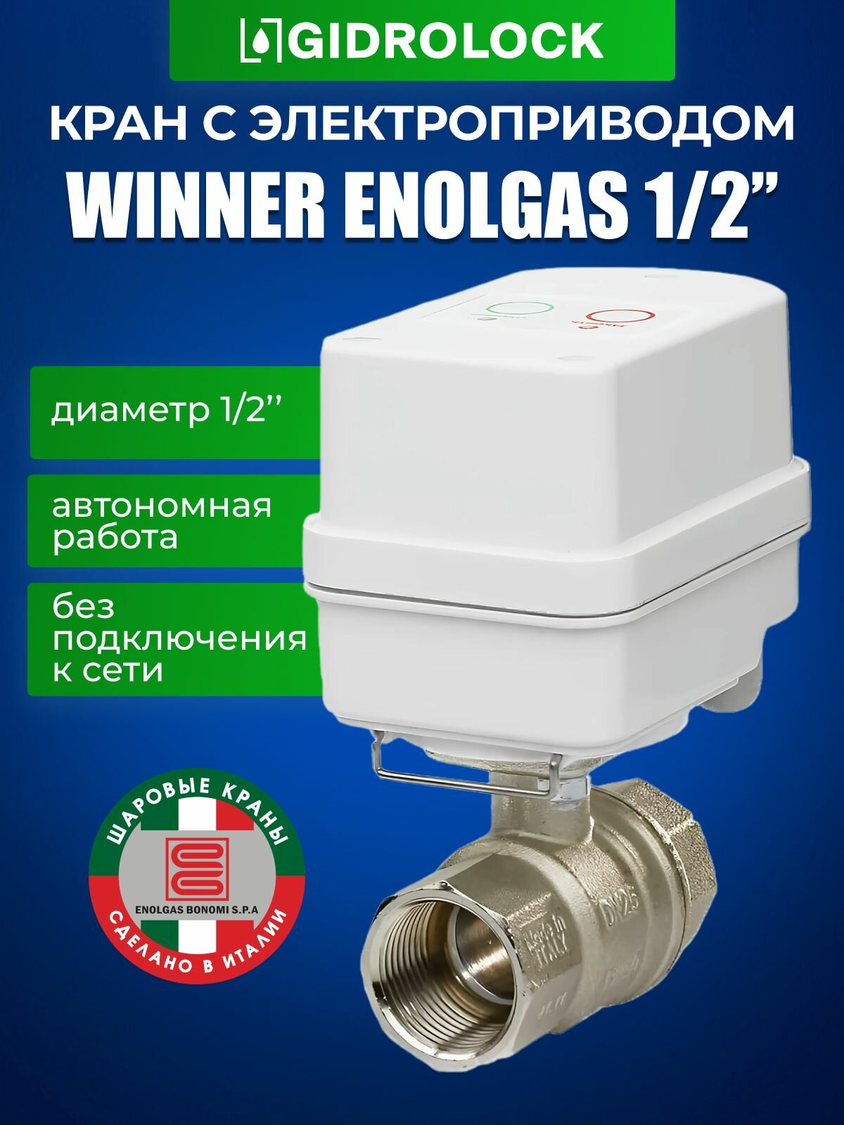 Кран шаровой с электроприводом Gidrolock Winner Enolgas 1/2" интересное:
