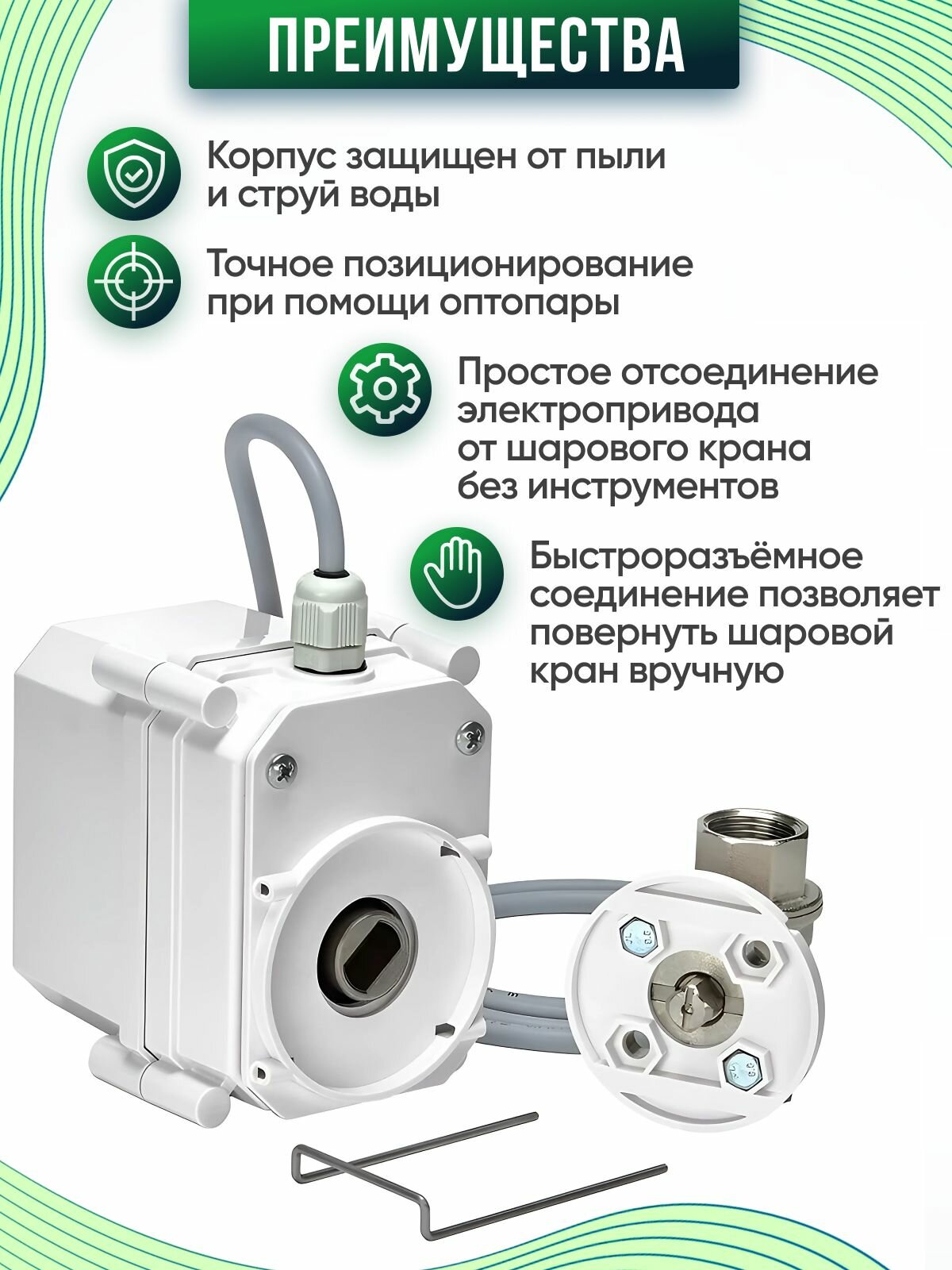 | Дополнительная информация | Есть возможность ручного открытия крана. |
