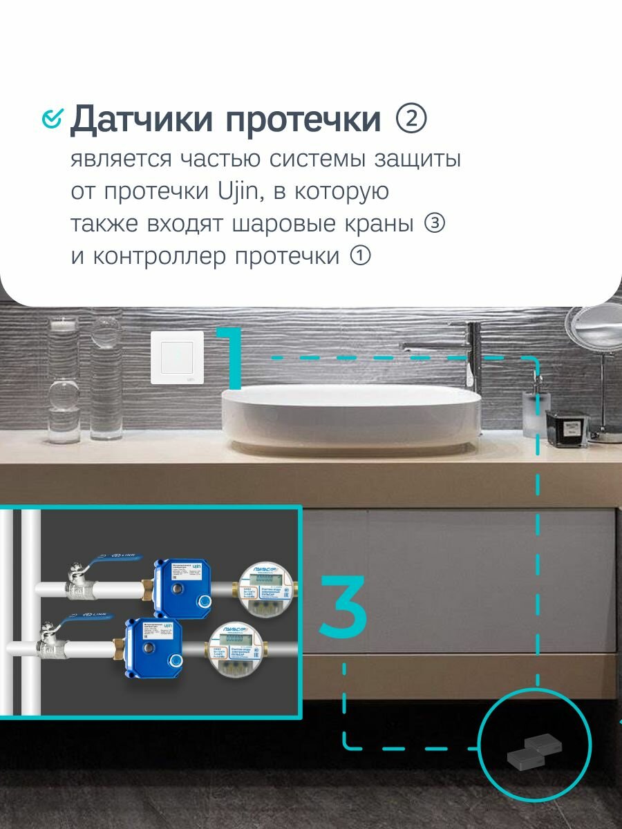 Умный проводной датчик протечки воды Ujin Aqua-Sense интересное: