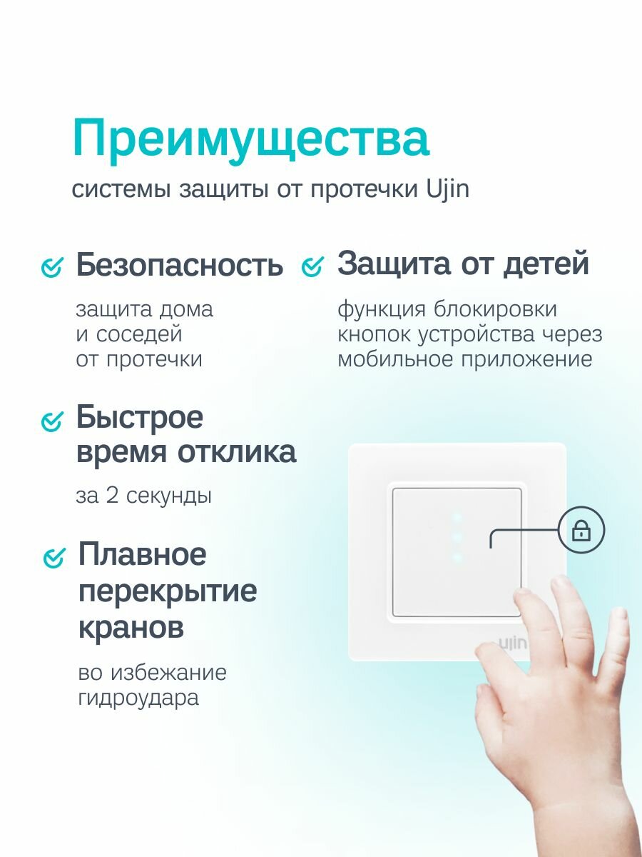 Система защиты от протечек Ujin Water Control (4 беспроводных датчика + 2 шаровых крана 1/2 '+ контроллер) wi-fi/управление через приложение