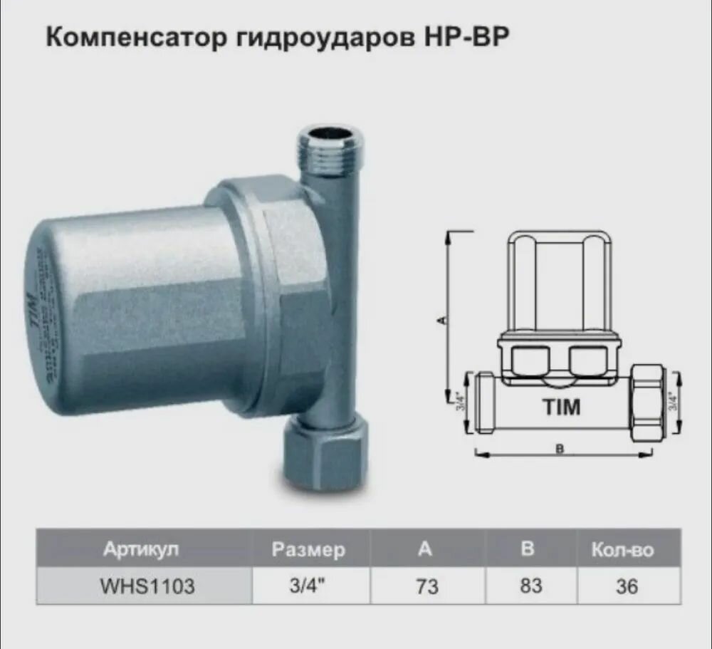 Ниже Вы можете прочитать отзывы на Компенсатор гидроудара проходной 3/4"НР-ВР ТИМ WHS1103-01. 4шт, ознакомится с подробными характеристиками, посмотреть интересные обзоры и фотографии на Компенсатор гидроудара проходной 3/4"НР-ВР ТИМ WHS1103-01. 4шт.