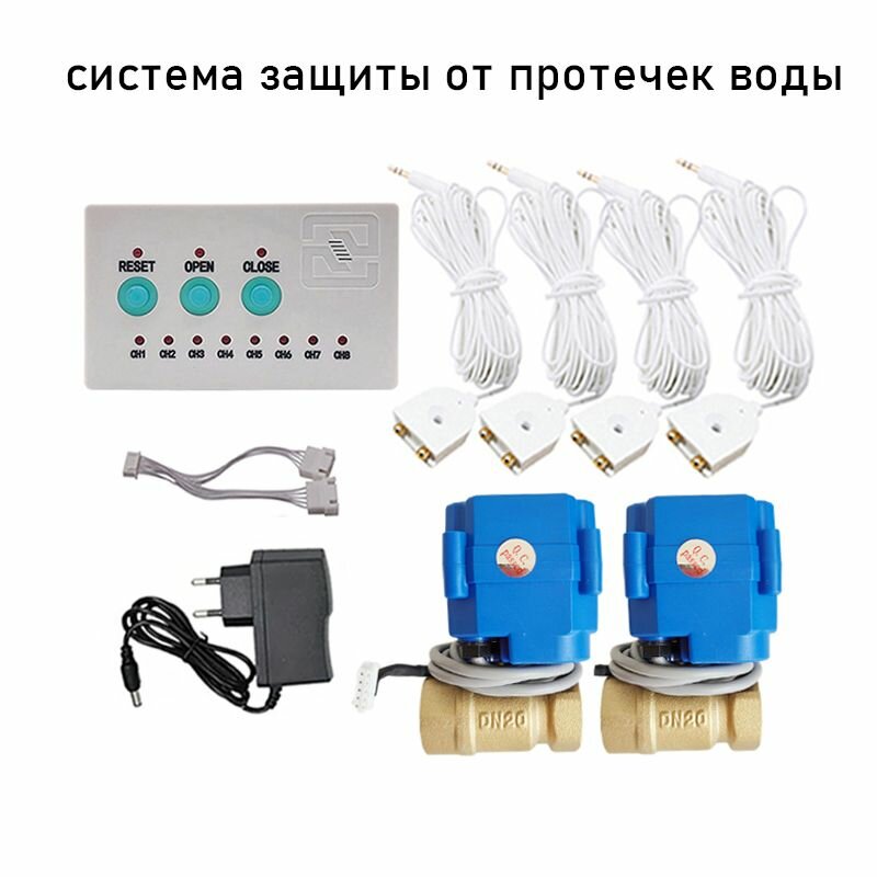 Интеллектуальное устройство для предотвращения протечек воды в доме с латунным краном 2шт DN15 и чувствительным датчиком воды 4шт