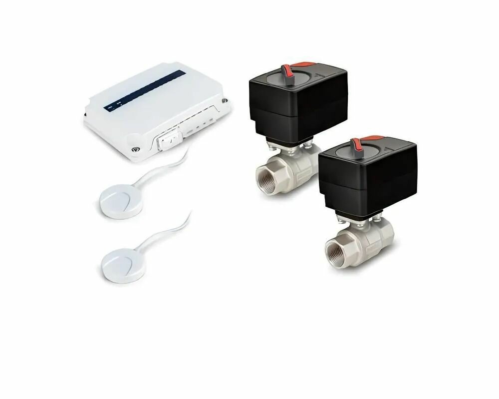 | Подробная комплектация | 1) Модуль управления 2) Датчик контроля протечек воды - 2шт. 3) Кран шаровый 1'' с электроприводом серии 220В - 2шт. |