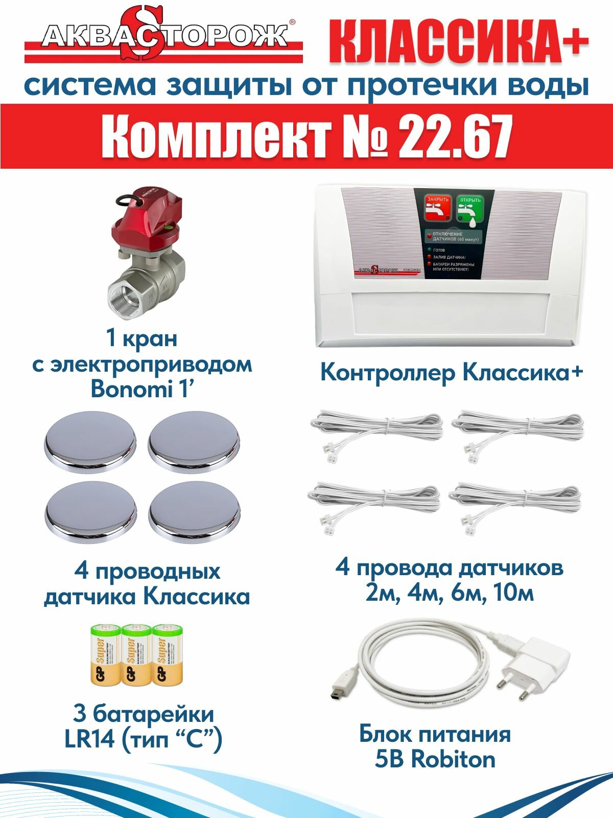 Комплект системы защиты от протечки воды Аквасторож Оригинал 1" Классика+, набор 22.67 интересное:
