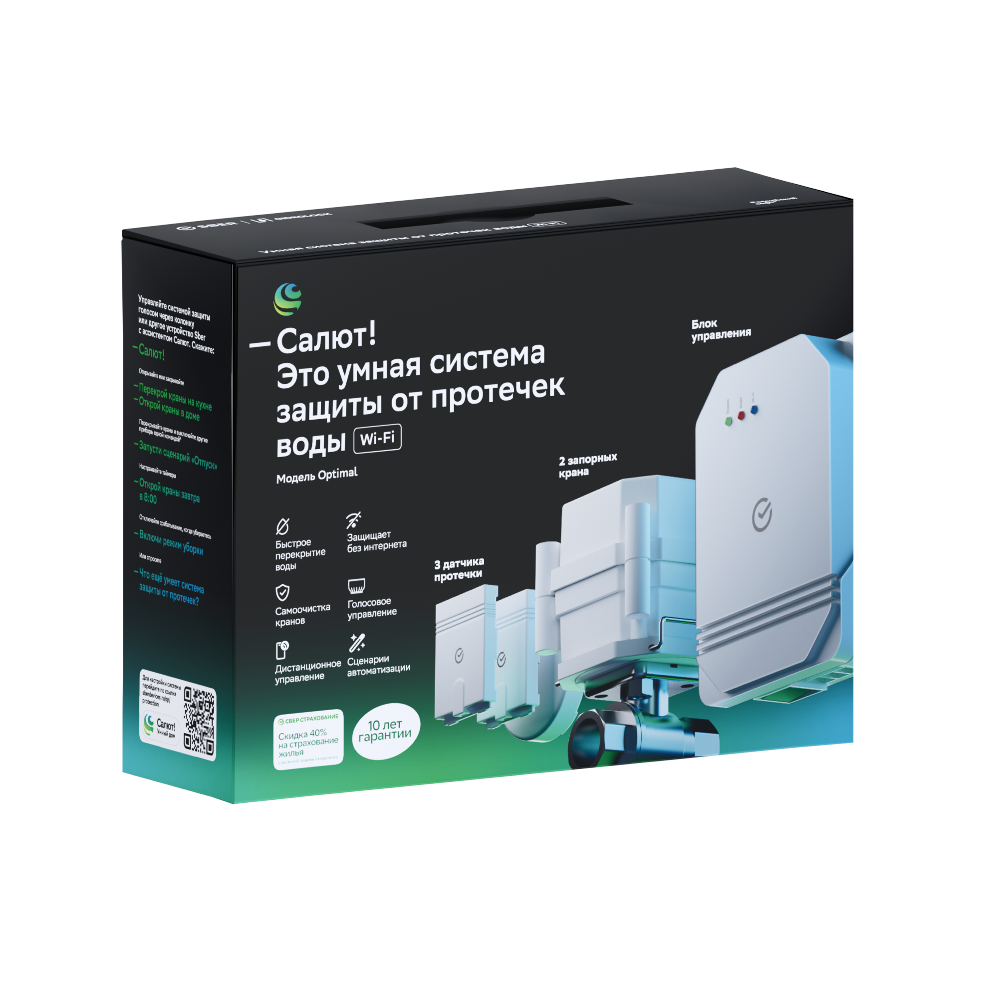 Умная система защиты от протечек воды SBER Wi-Fi 1/2 дюйма, Модель: Optimal интересное: