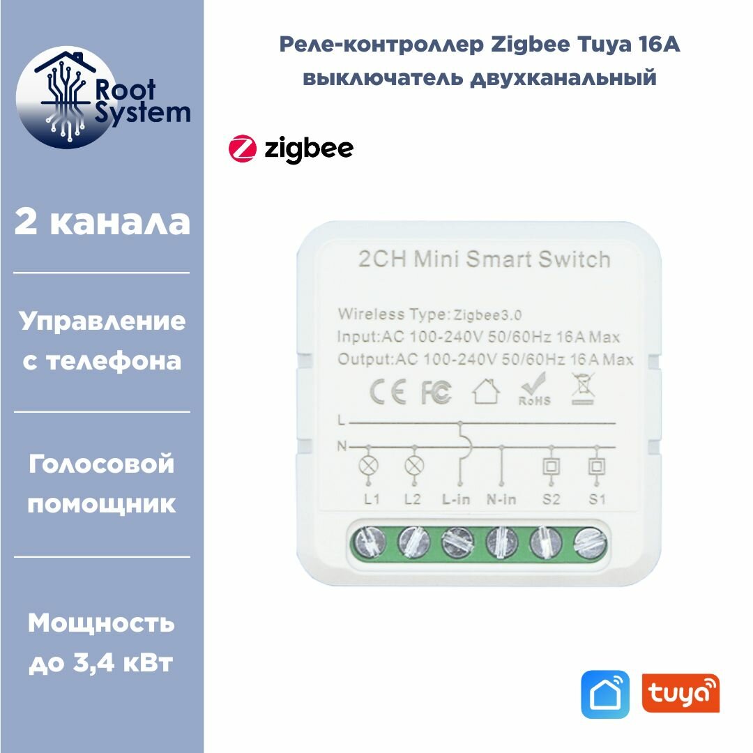 Умное реле Zigbee с Алисой, 2 канала, 10А, с нолём, проходной выключатель интересное: