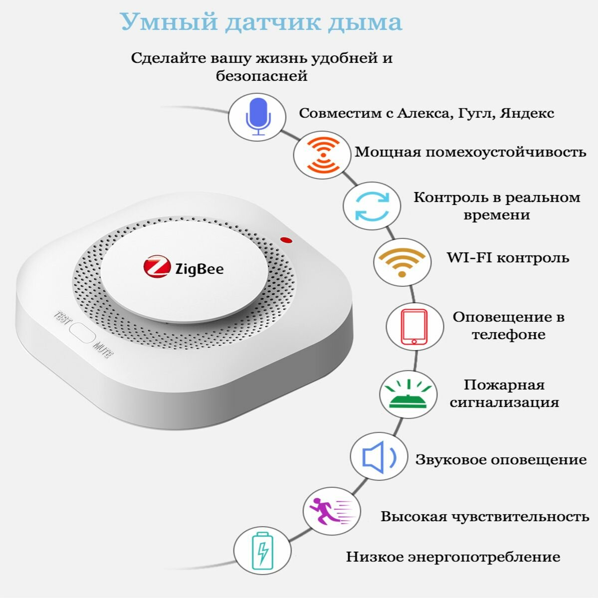 Умный Датчик задымления Zigbee Original(нужен шлюз) интересное: