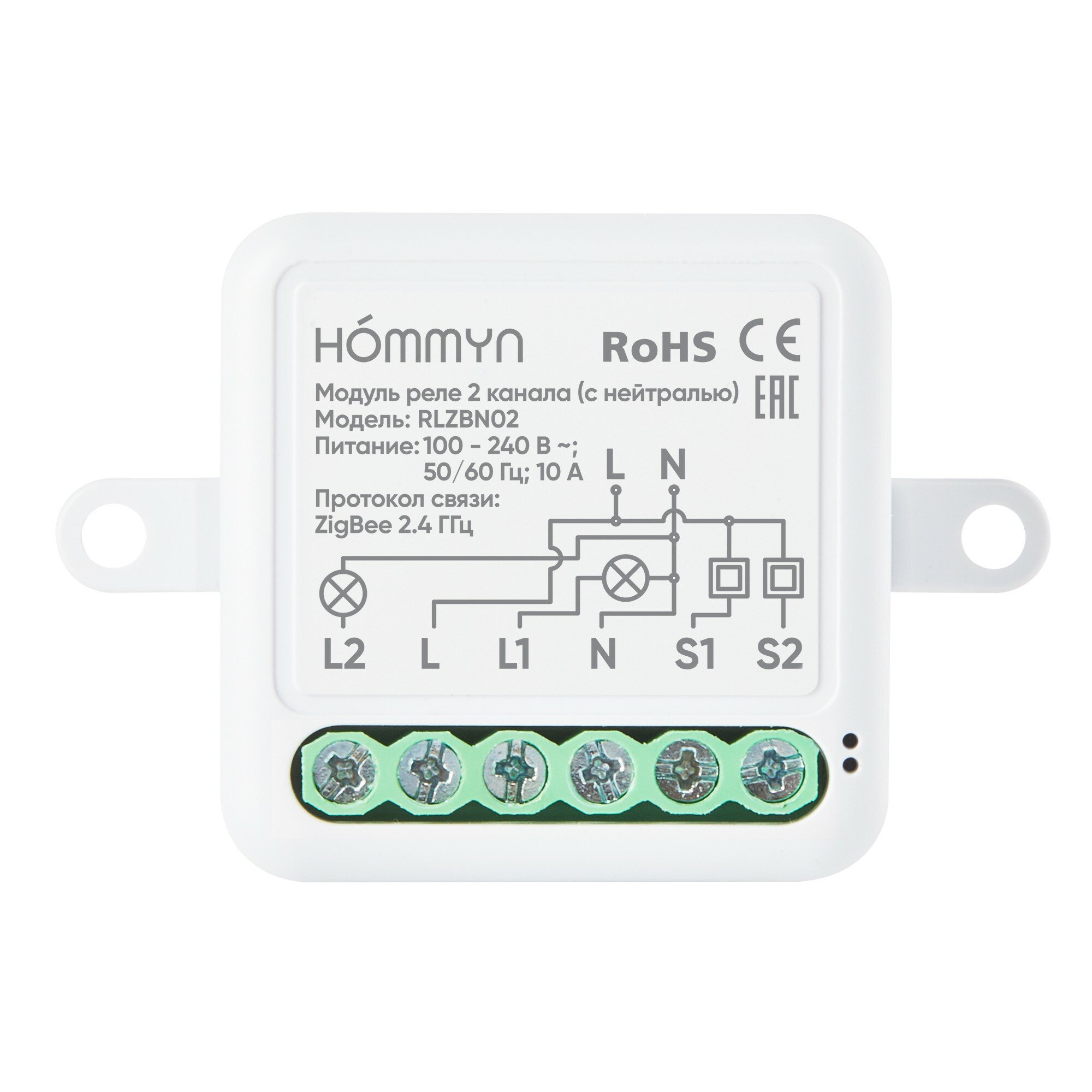 Купить Модуль реле HOMMYN zigbee 2 канала (с нейтралью) RLZBN02