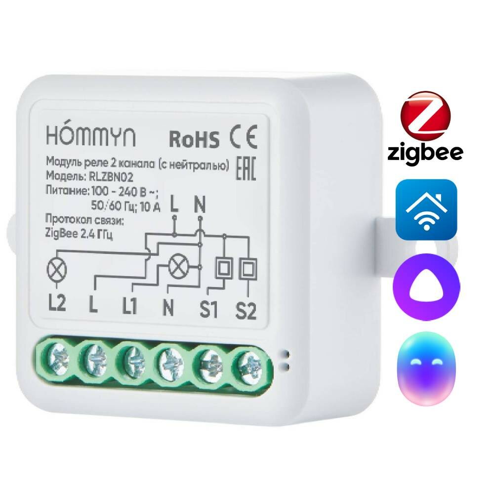 Модуль реле HOMMYN zigbee 2 канала (с нейтралью) RLZBN02 интересное: