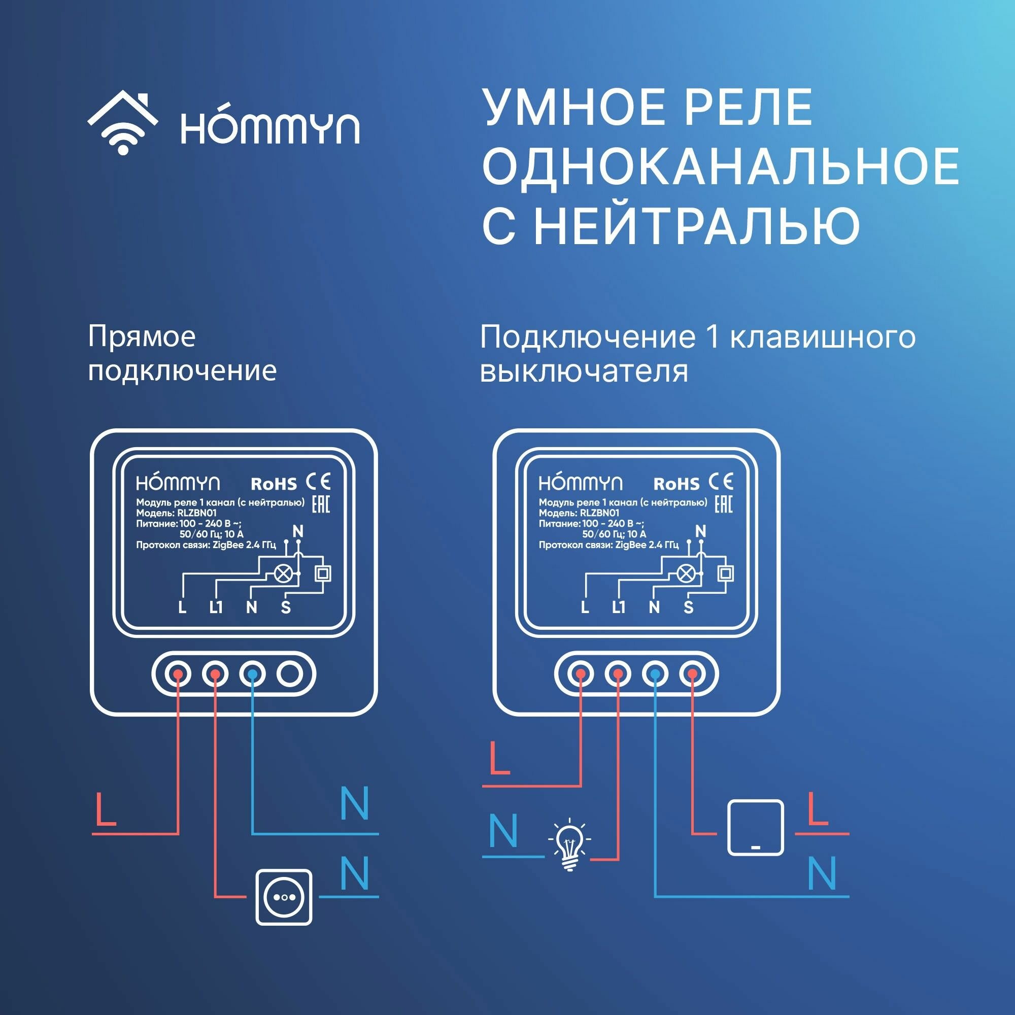Модуль реле HOMMYN zigbee 1 канал (с нейтралью) RLZBN01 интересное: