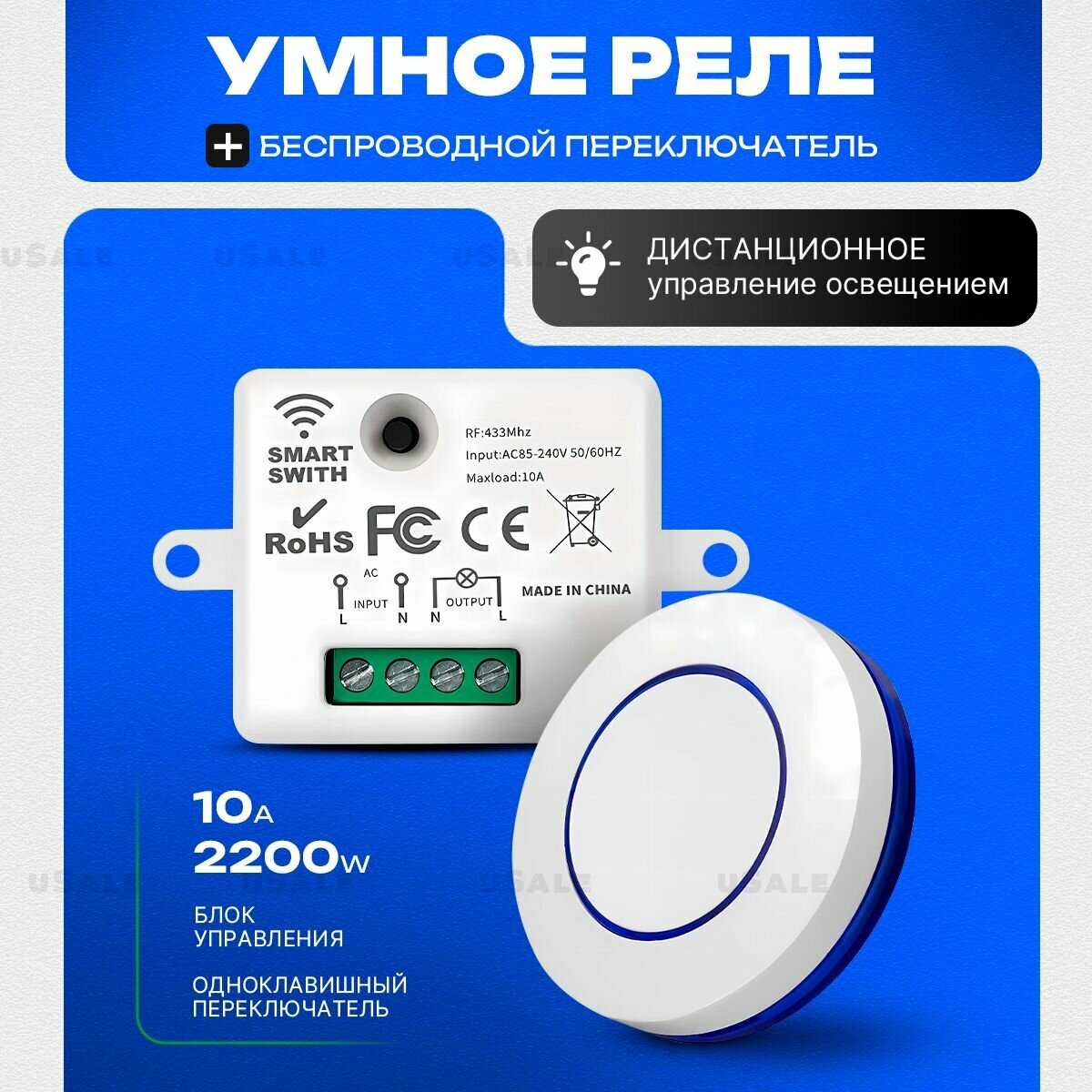 | Состав комплекта | круглый выключатель дистанционного управления + реле |