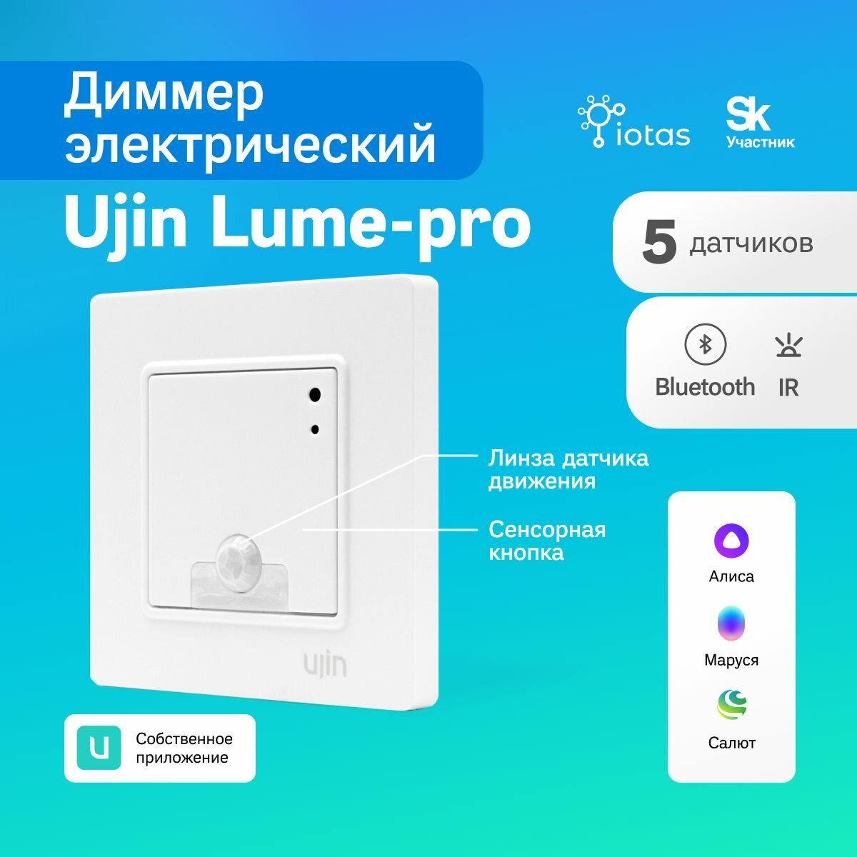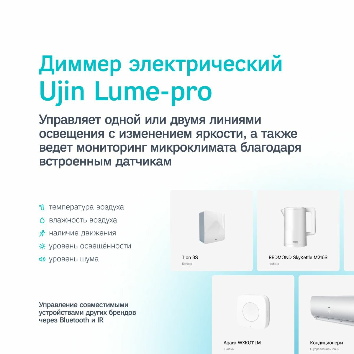 Умный выключатель-диммер + датчик 5 в 1 WiFi Bluetooth IR сенсорный с нулем, голосовое управление, совместим с Яндекс, Сбер, VK, белый Lume Luxe D-10000-02 интересное: