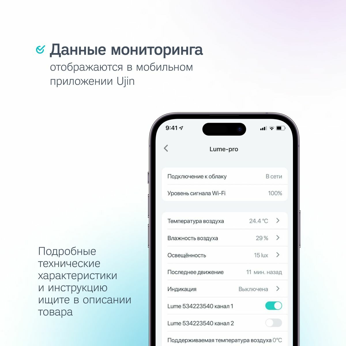 | Датчики | Гигрометр, Датчик движения, Датчик освещенности, Датчик температуры |