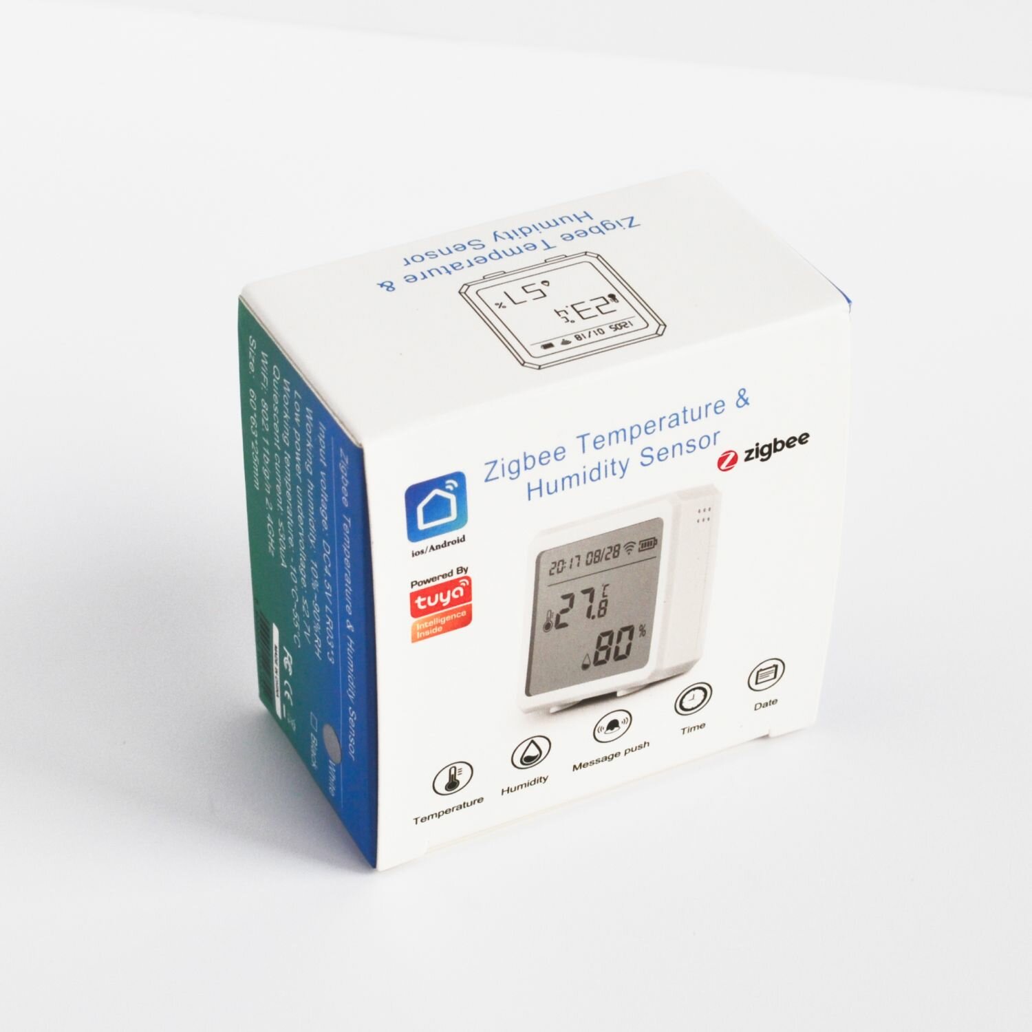 Купить Умный Zigbee датчик температуры и влажности Tuya (с дисплеем), Smart, Белый корпус