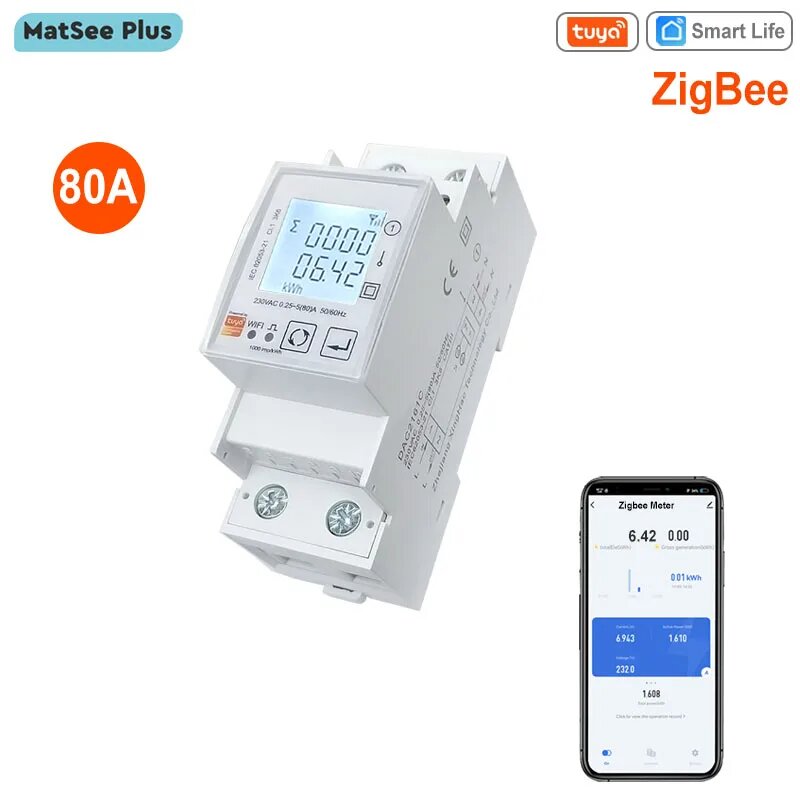 Энергетический монитор MatSee Plus Tuya ZigBee 80А