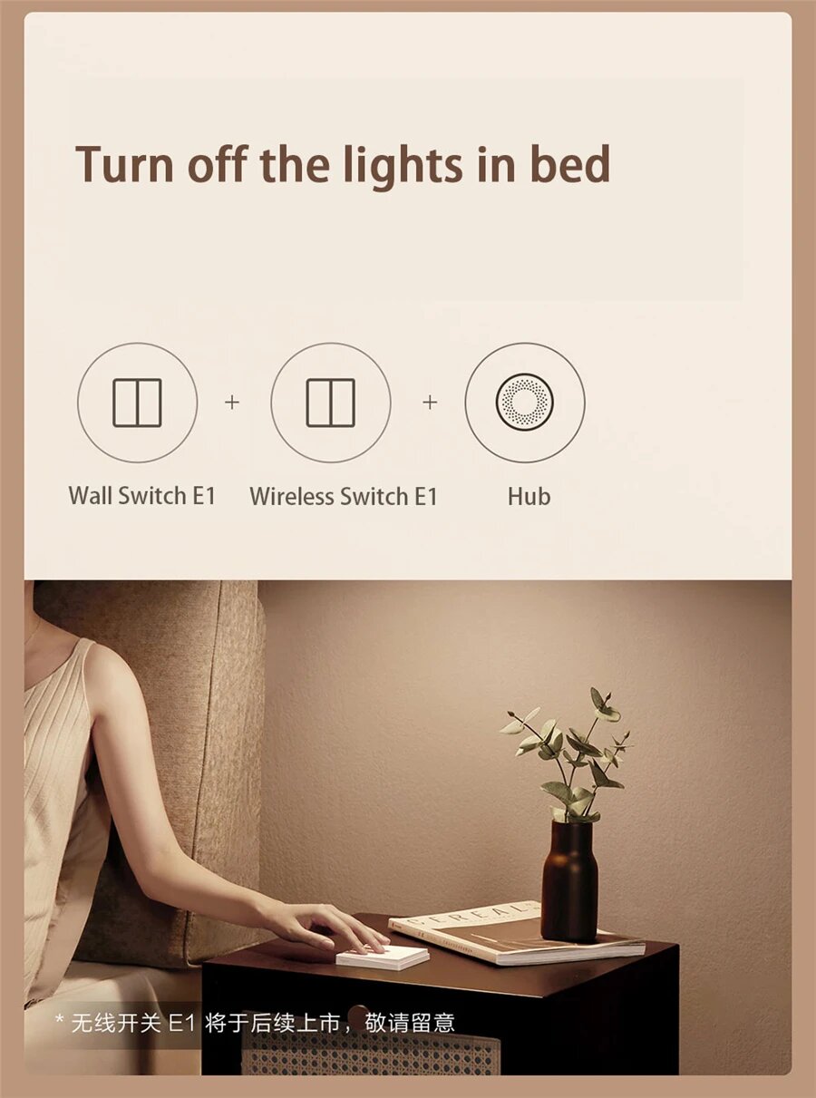 Aqara Smart E1 Беспроводной выключатель для умного дома, No Neutral 1key