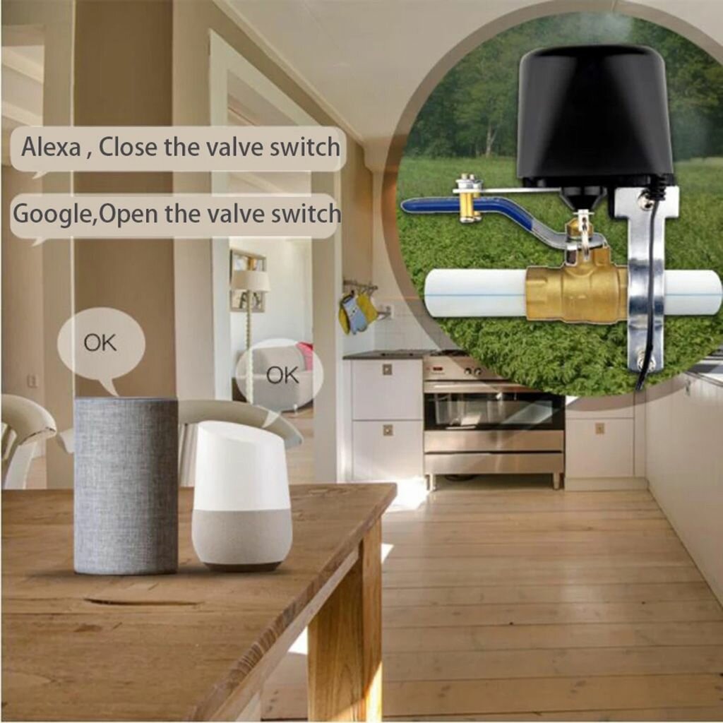 Купить Tuya для умного Wi-Fi контроллера отключения водяного/газового клапана работает с Alexa Google-home Kitchen Garden Fa
