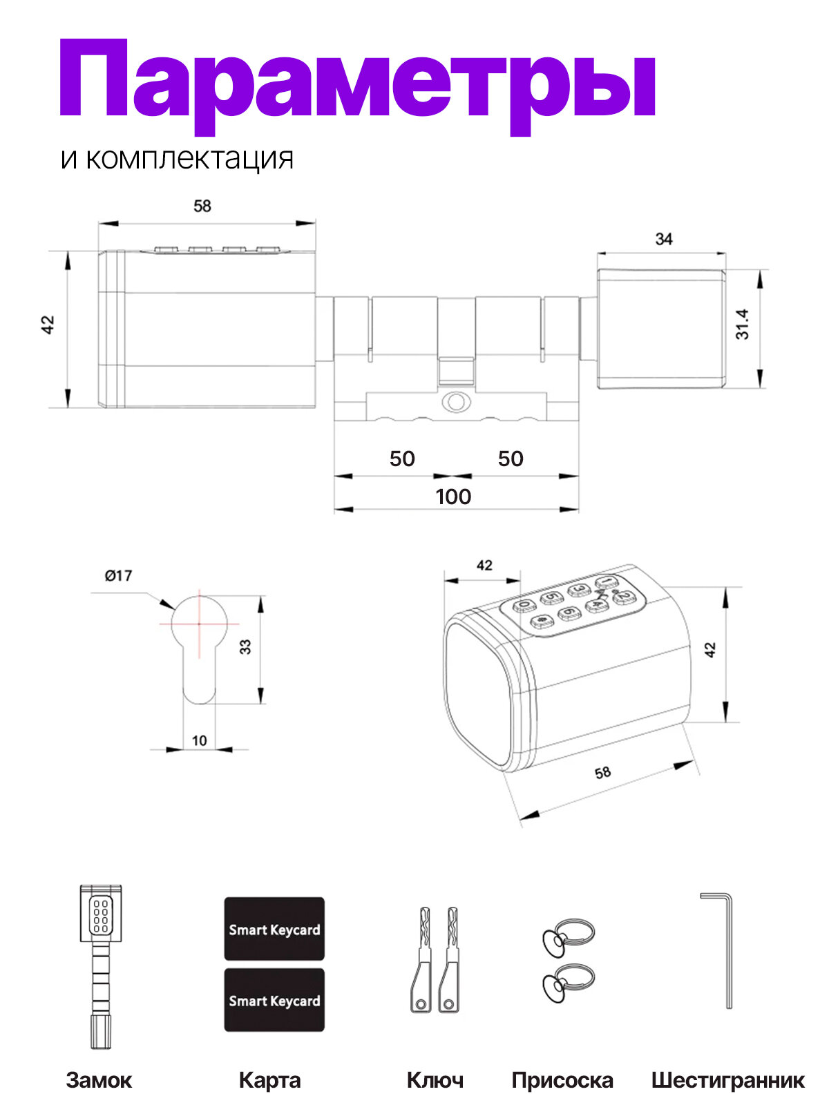 Цилиндровый механизм, личинка замка с кодом TTLock