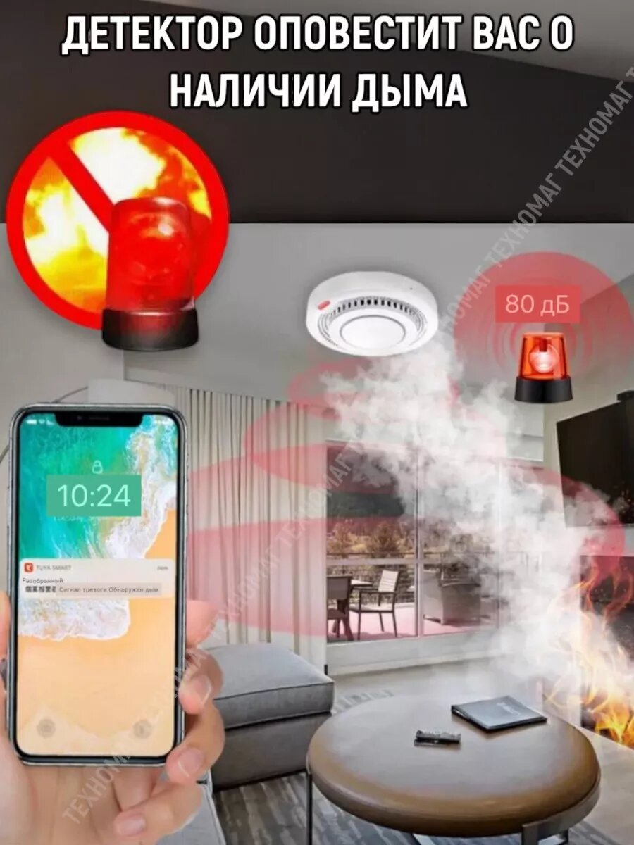 Купить Детектор датчик дыма Tuya Wi-Fi