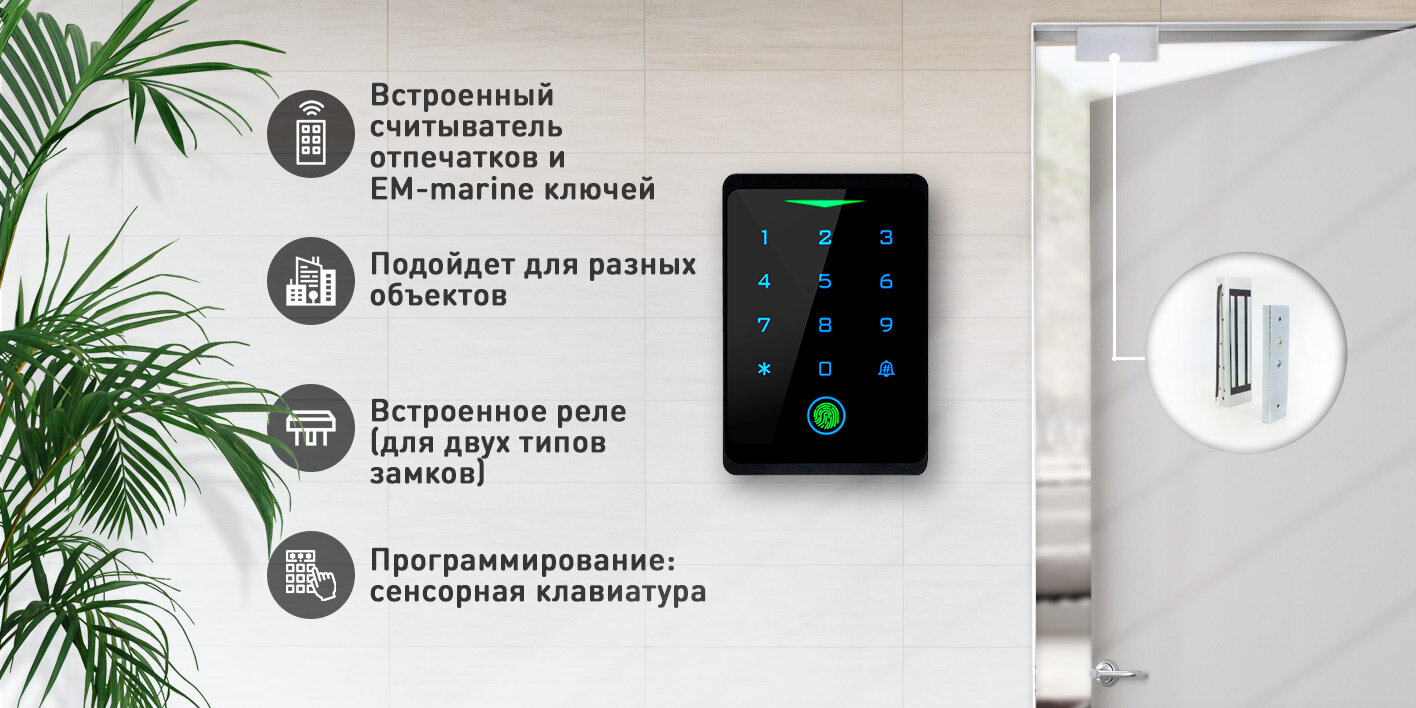 Комплект СКУД на одну дверь PS-link CH1-FP-60 WIFI со считывателем отпечатков и усилием отрыва замка 60кг интересное: