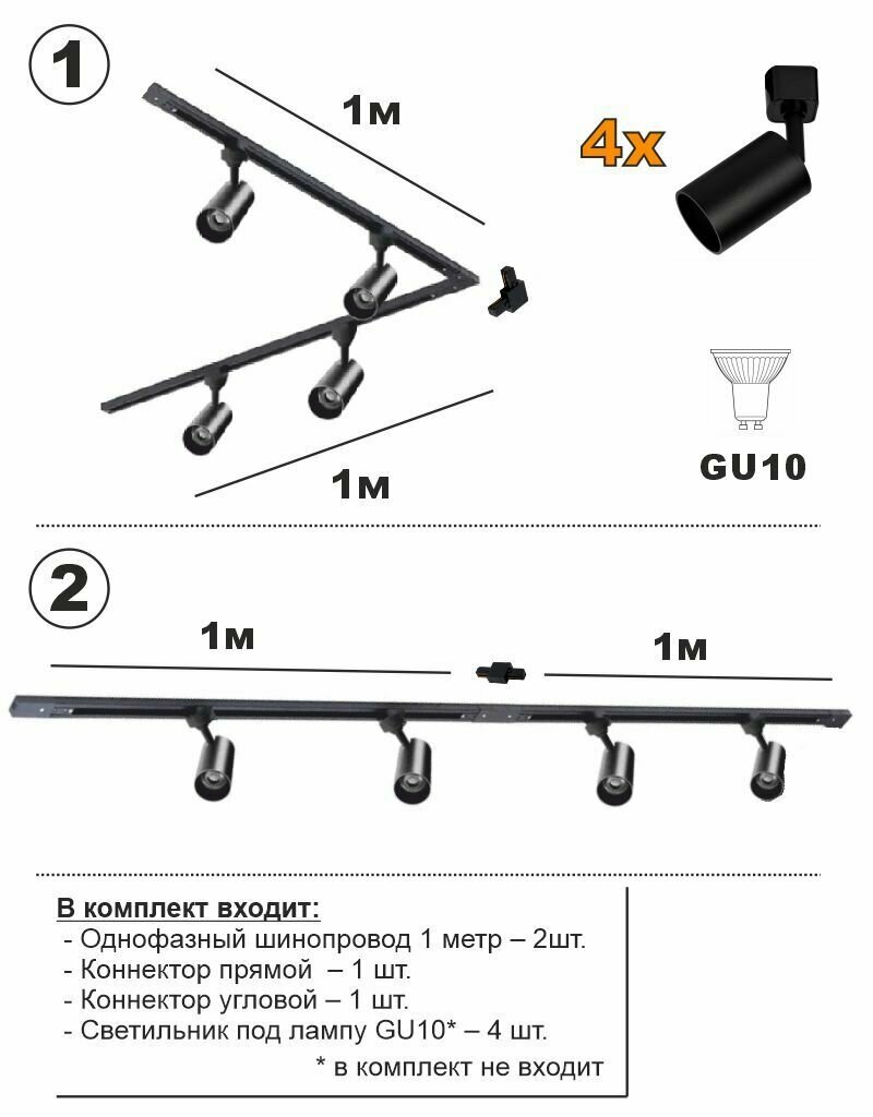 Купить Универсальный комплект трековой системы, под лампу GU10, черный