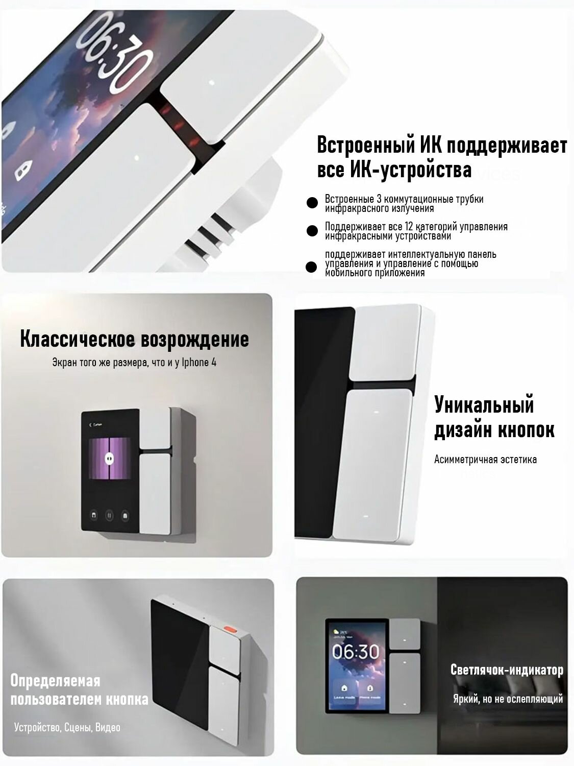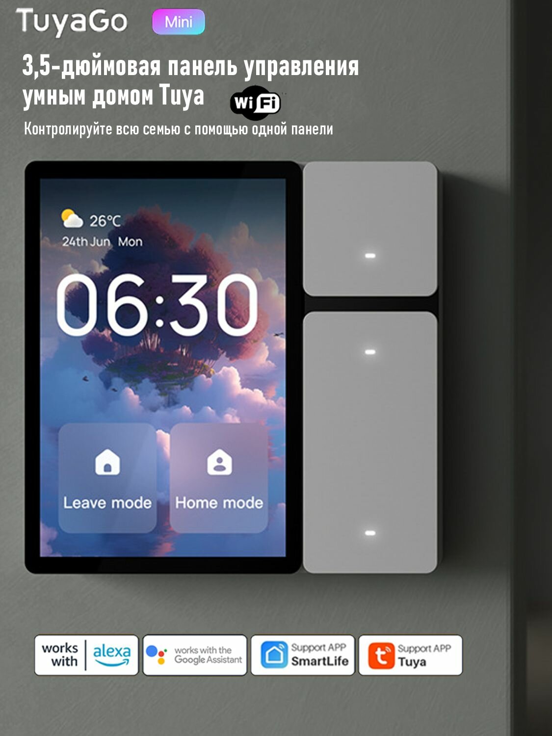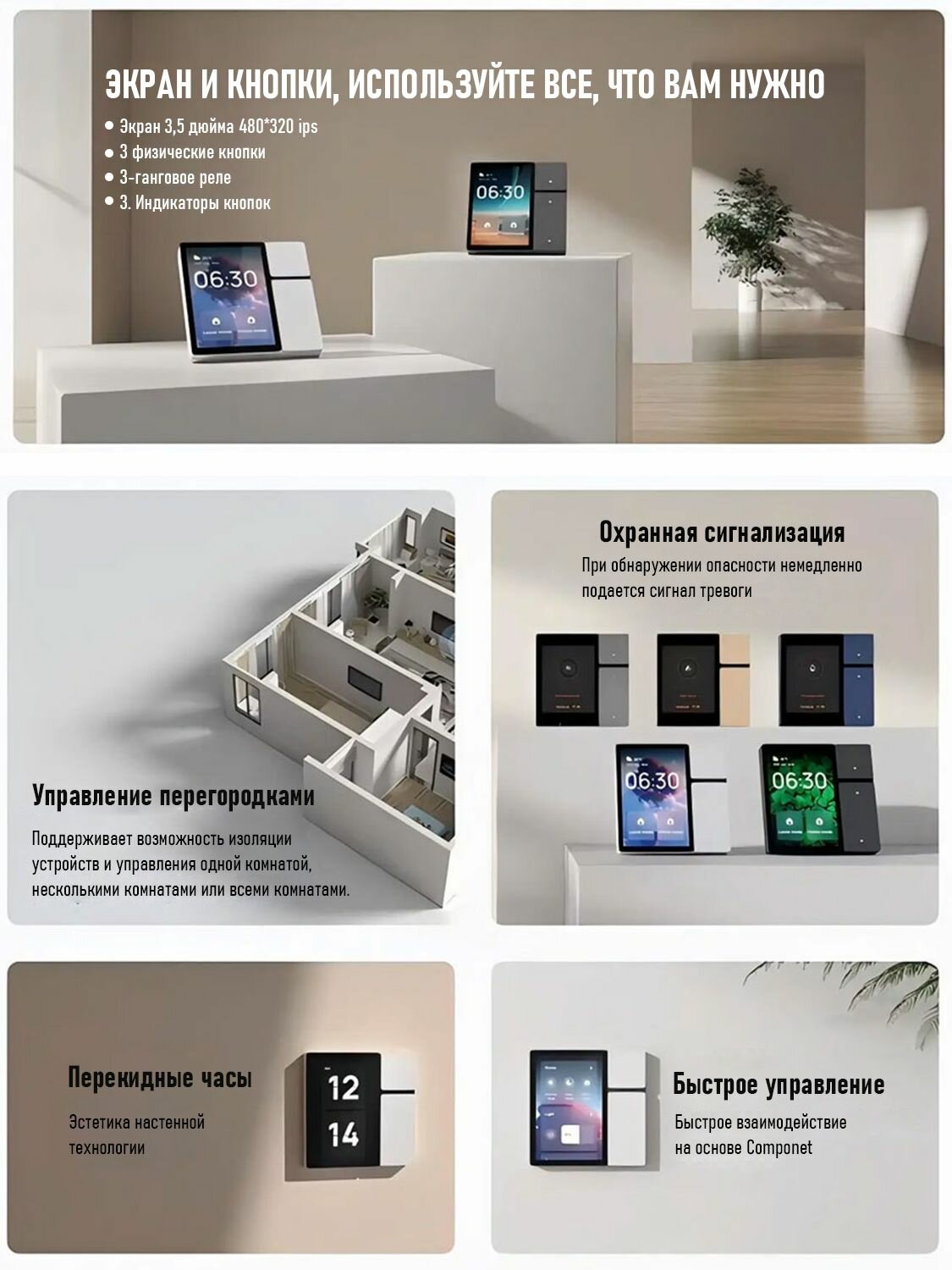 Умная панель управления Tuya Smart Центральный контроллер умного дома Сенсорный экран + ИК-пульт + Wi-Fi/Sigmesh 3.5" Дисплей (белый) интересное: