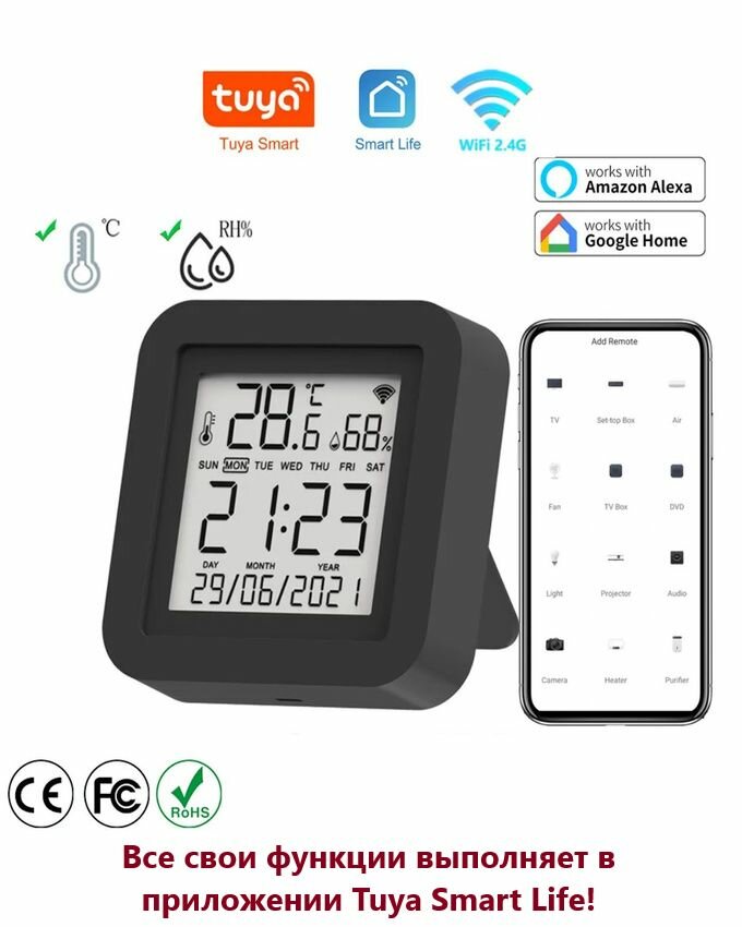 Универсальный умный ИК-пульт дистанционного управления с датчиком температуры и влажности (питание USB, без блока в комплекте) (Д) интересное:
