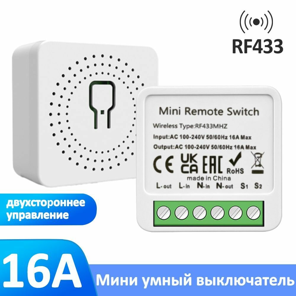 Купить Мини умный выключатель RF433, 16A, одно- и двусторонний контроль, 100-240V