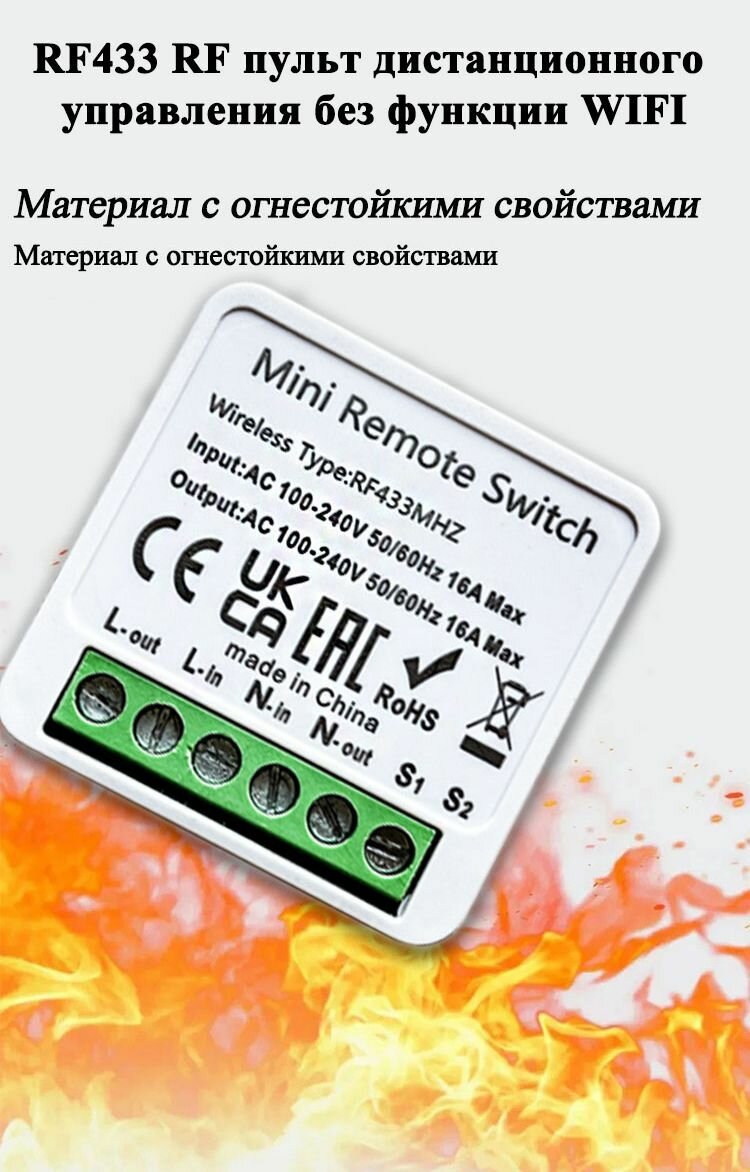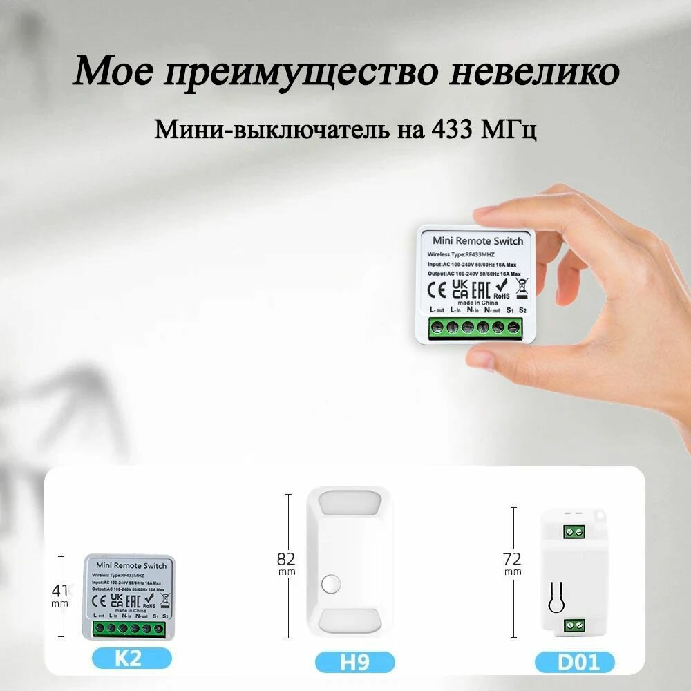 Мини умный выключатель RF433, 16A, одно- и двусторонний контроль, 100-240V интересное: