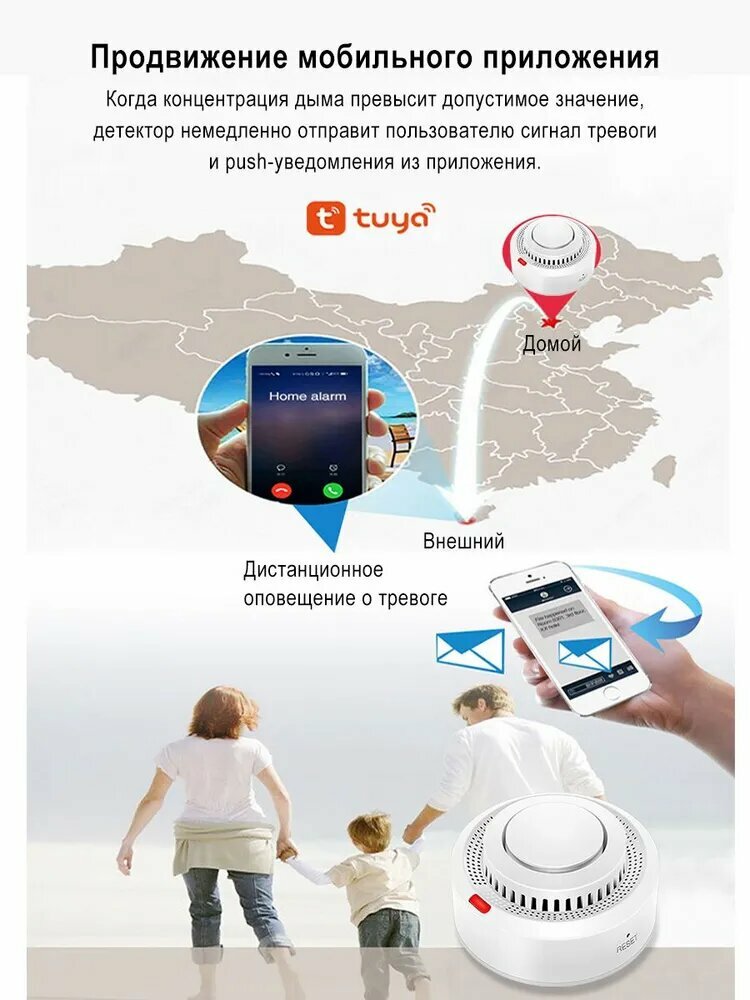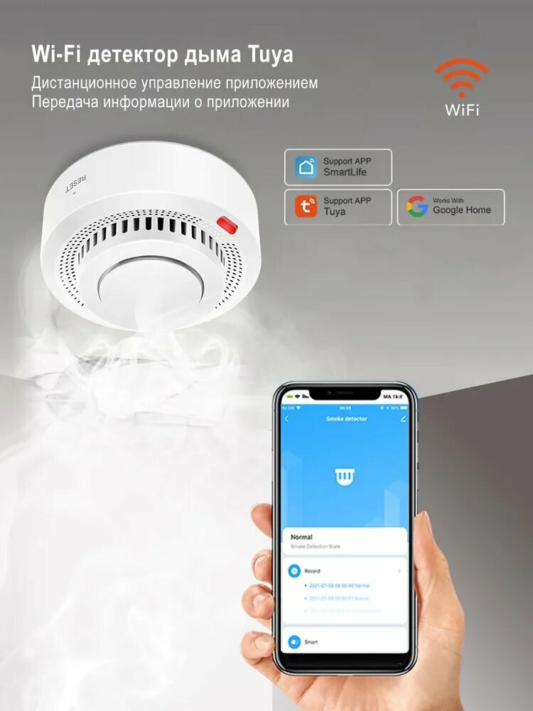 Датчик дыма Tuya, Wi-Fi, умный, 4 шт, для дома, с приложением, автономный интересное: