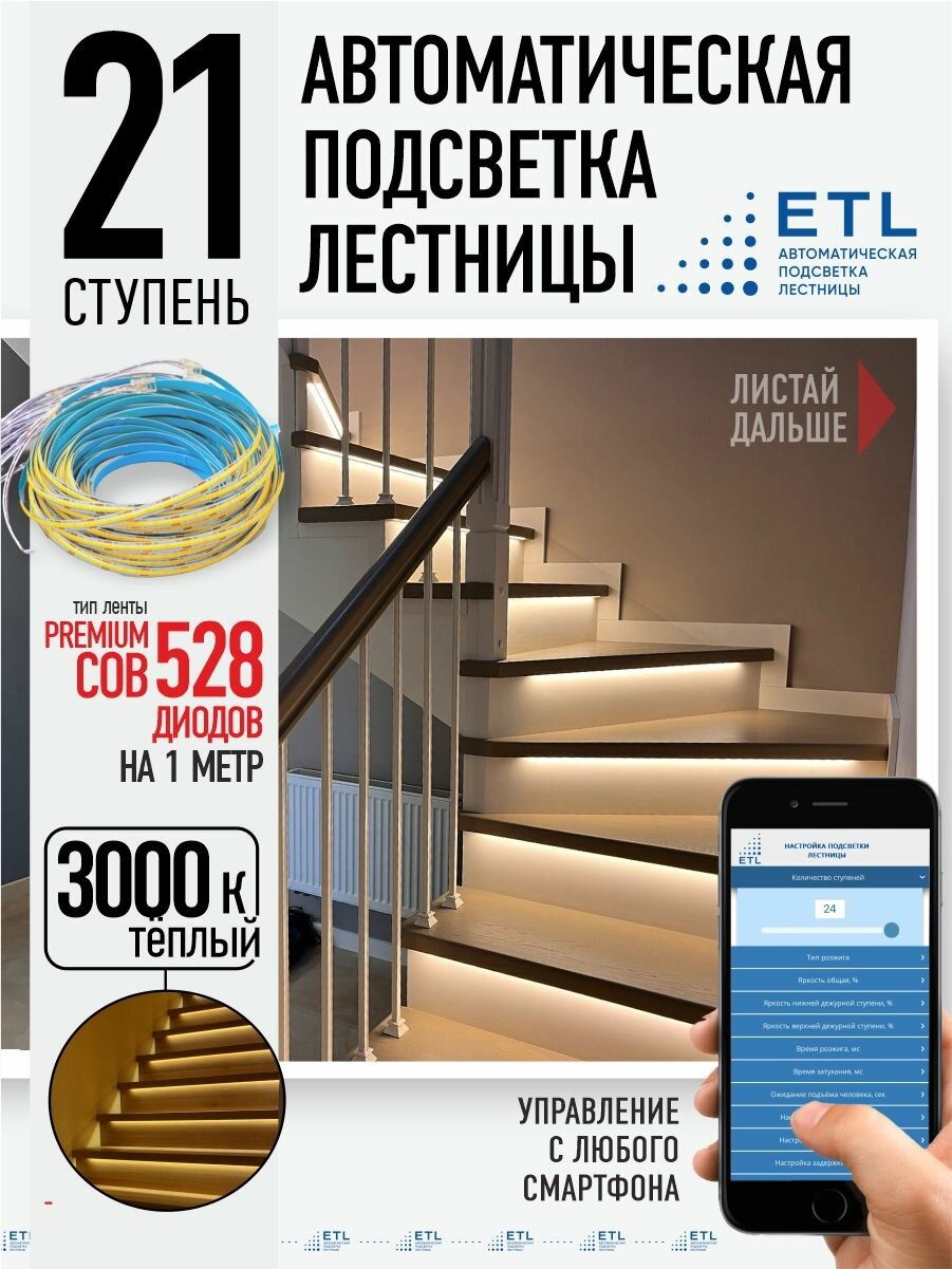 Комплект подсветки лестниц ETL ,21 ступень с COB лентой, 3000К интересное: