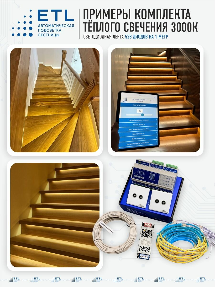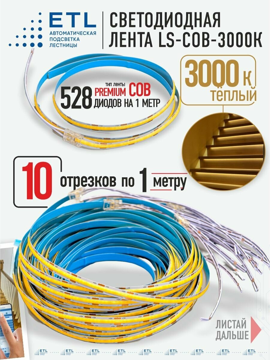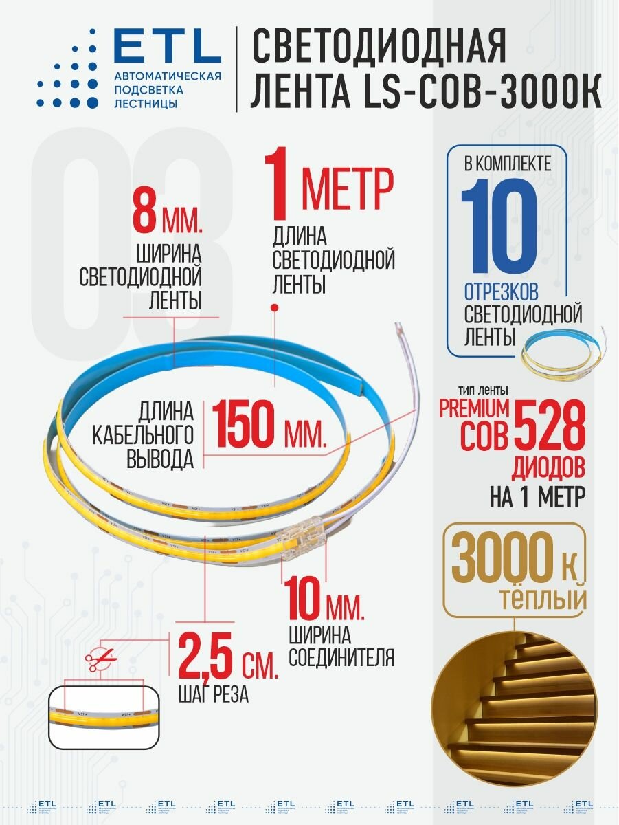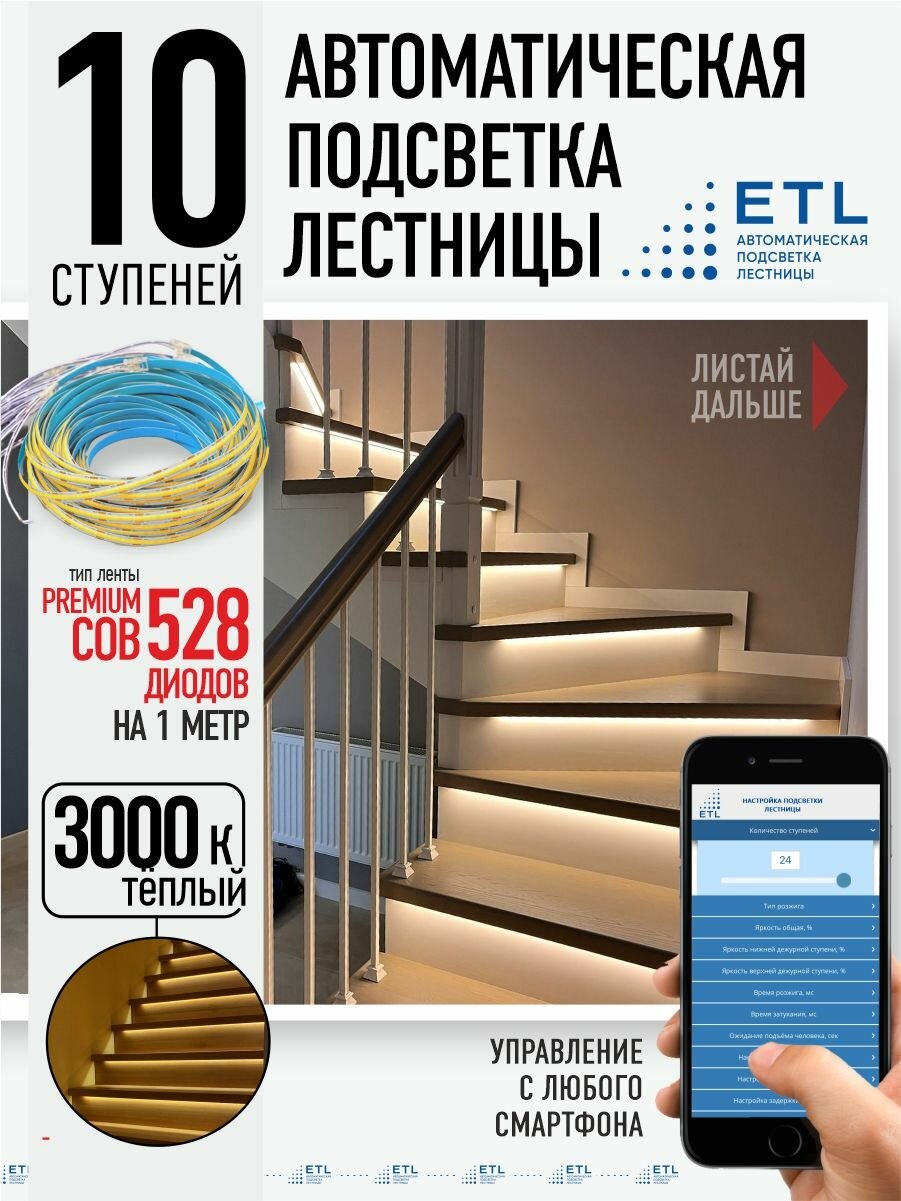 Комплект подсветки лестниц ETL ,10 ступеней с COB лентой, 3000К интересное: