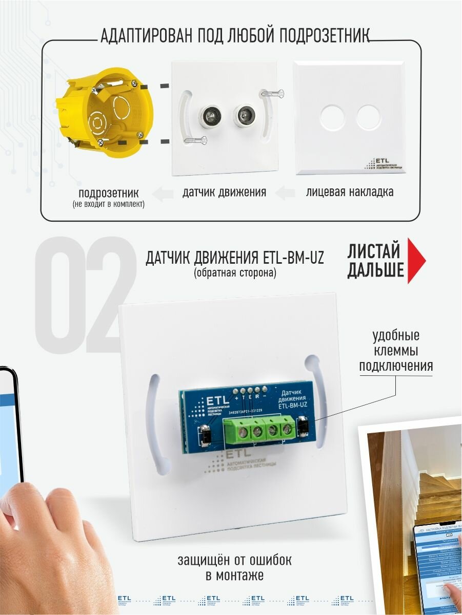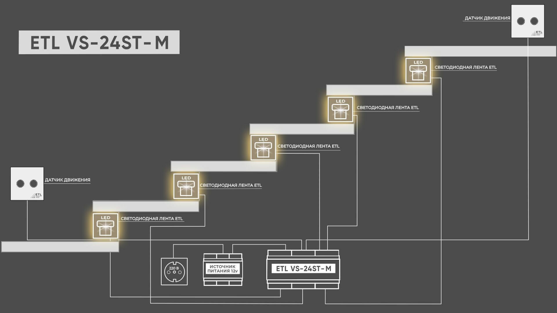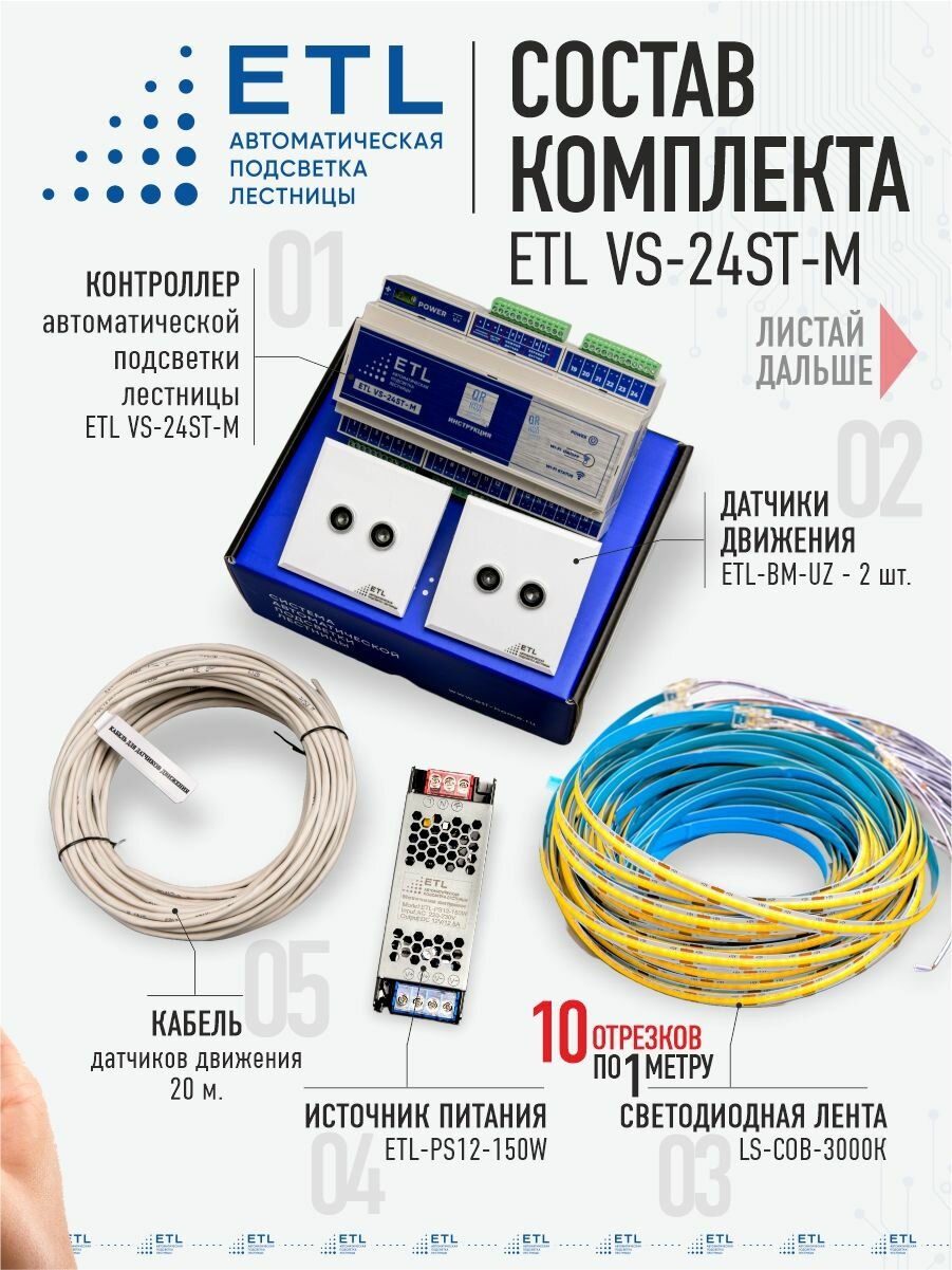 Комплект подсветки лестниц ETL ,10 ступеней с COB лентой, 3000К интересное: