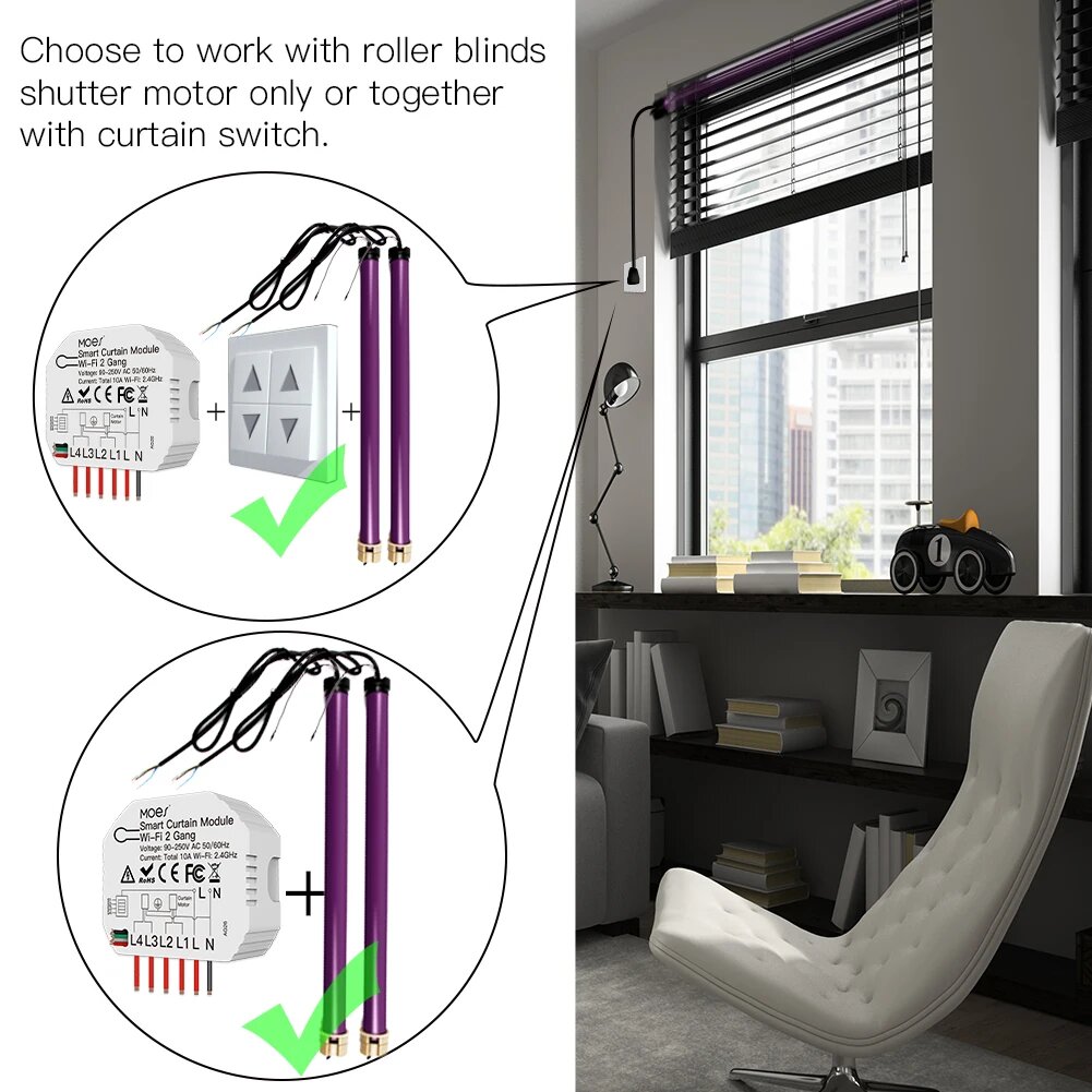 MOES Tuya Smart WiFi двухклавишный модуль управления шторами, 1 PC интересное: