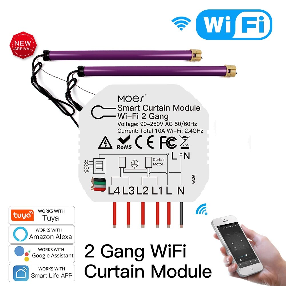 Купить MOES Tuya Smart WiFi двухклавишный модуль управления шторами, 1 PC