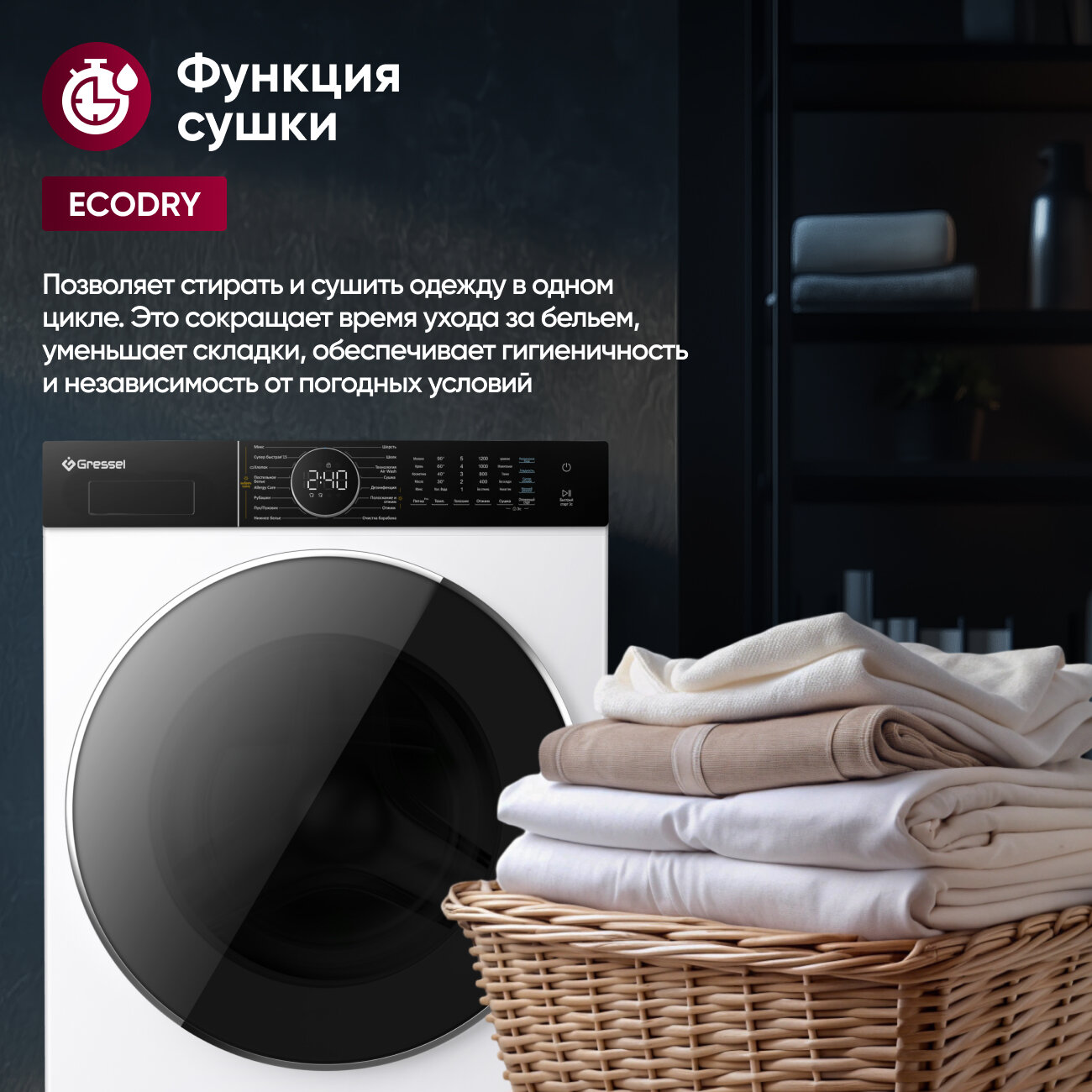 Купить Стиральная машина с сушкой Gressel UWS601 (10,5 кг), инверторный мотор с прямым приводом, функция пара, 1200 оборотов